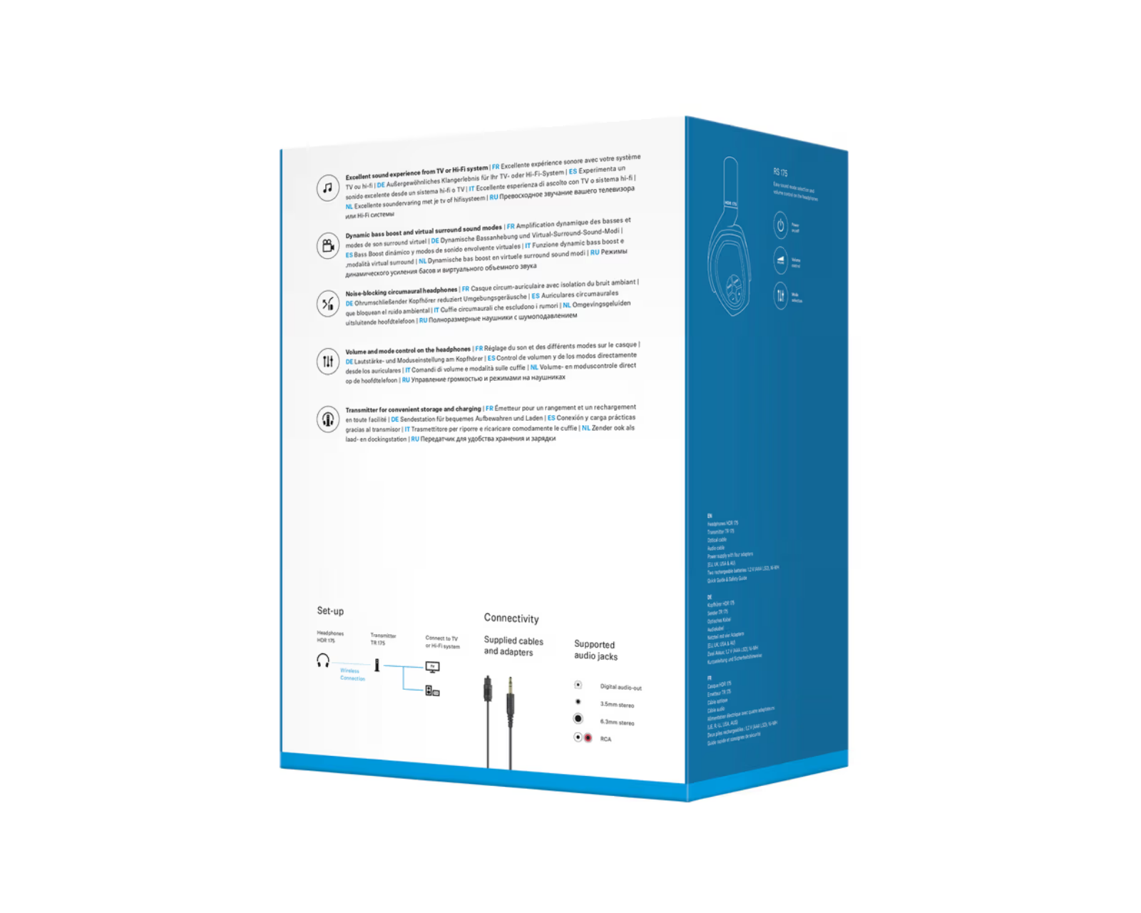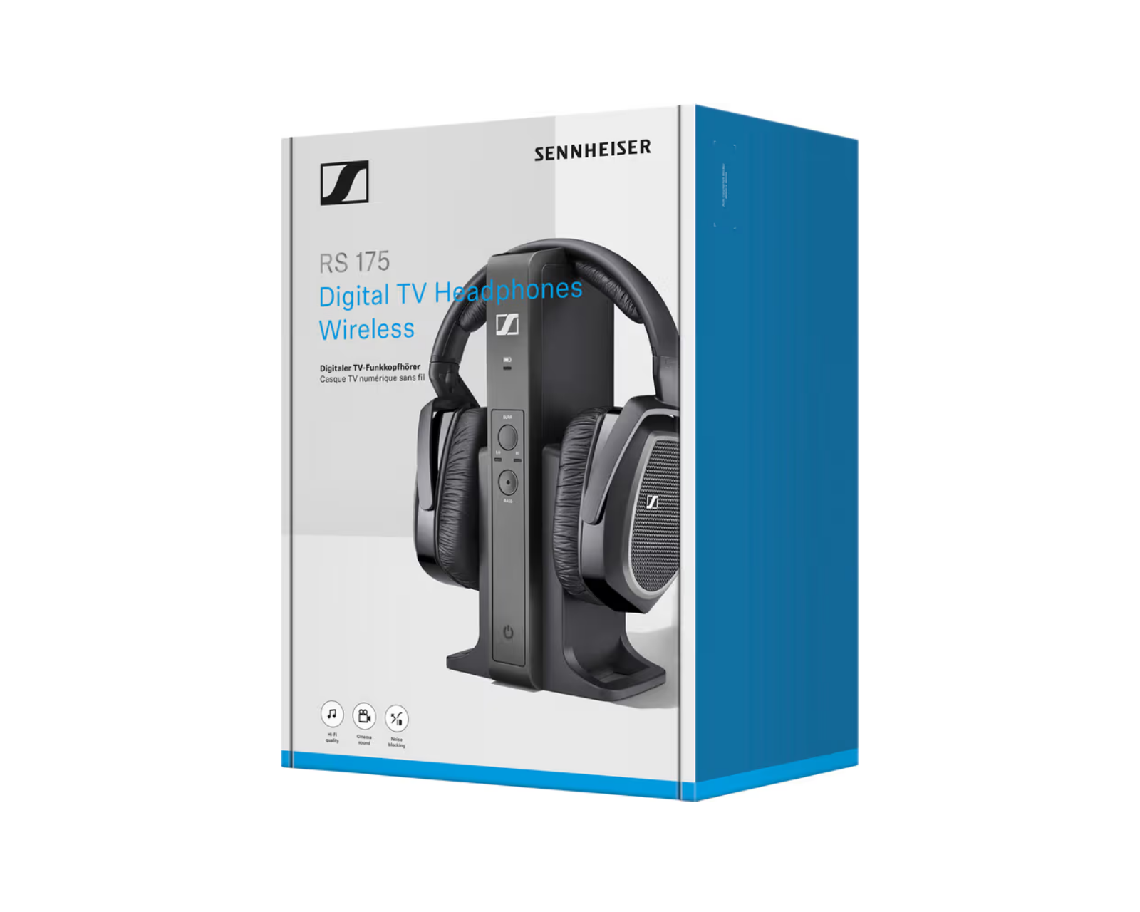RS 175 is a wireless headphone system from Sennheiser that offers noise-free digital sound quality and total freedom in your home. These closed over-ear headphones provide an optimal sound experience with maximum isolation from ambient noise. With their lightweight design and soft ear cushions, they are designed for long-lasting comfort even during extended listening sessions.RS 175 includes a wireless transmitter that also functions as a charging station, making it easy to keep the headphones ready for use. The advanced transmission technology on 2.4 GHz ensures clear sound transmission without interference, and a range of up to 100 meters provides the freedom to move without losing sound quality. The headphones also feature optional EQ settings, such as Bass Boost and Virtual Surround, that customize the listening experience according to your preferences and content, whether it’s music or movies.