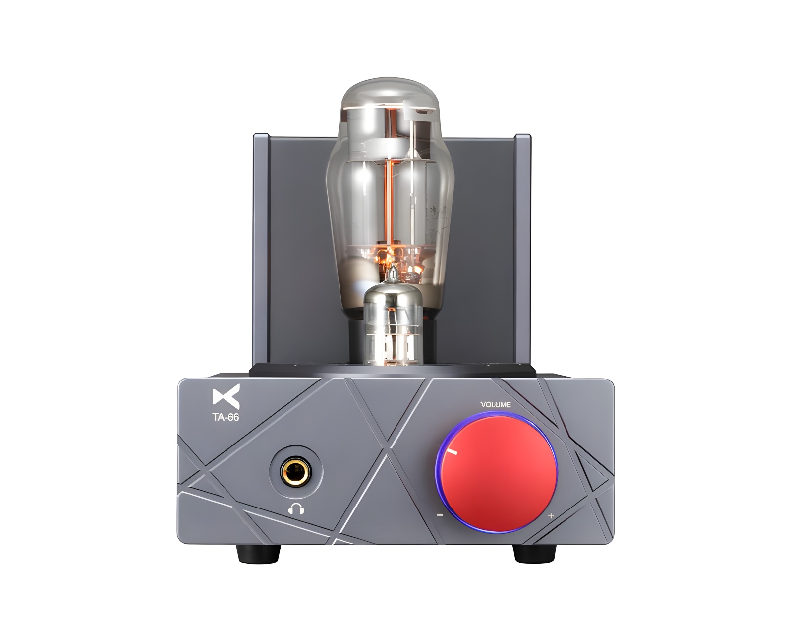 TA-66 AMP is an OTL tube headphone amplifier from xDuoo that combines several high-quality components to deliver a refined audio experience. It uses a 6N2 tube for the amplification stage and a 6N5P tube for the buffer stage, creating a smooth and charming sound character. The device is intended for music listening and gaming, allowing for enhanced audio quality for various headphones and active speakers. The build quality includes a solid aluminum casing with a sandblasted surface, providing both visual aesthetics and structural durability. A step-by-step potentiometer addresses volume imbalance and helps maintain homogeneous sound levels. Furthermore, point-to-point soldering and copper wiring in the tube circuit minimize interference and maximize sound reproduction. Equipped with professional metal-polyester film capacitors, professional audio performance is ensured. Summary- OTL tube headphone amplifier