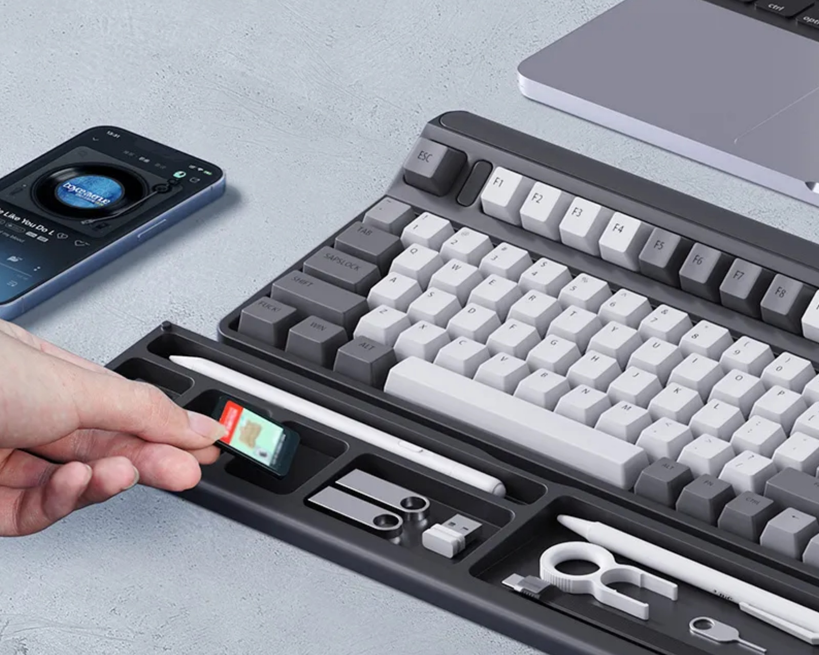 Tangent keyboard wrist support with storage bag is a wrist support from Hagibis, designed for use during computer work. It offers partitioned storage that facilitates the management of small items on the desk, contributing to a structured workplace. The product is specifically designed to provide ergonomic support during long writing sessions.The wrist support has a soft and elastic construction, made from high-quality leather-like material and filled with a carefully selected high-quality sponge material. It provides a pleasant feel and resistance to deformation over time. Its slanted design ensures a natural relaxation of the wrist, reducing pressure during use. The wrist support fits well in office environments, where it provides natural support and increases comfort during work.