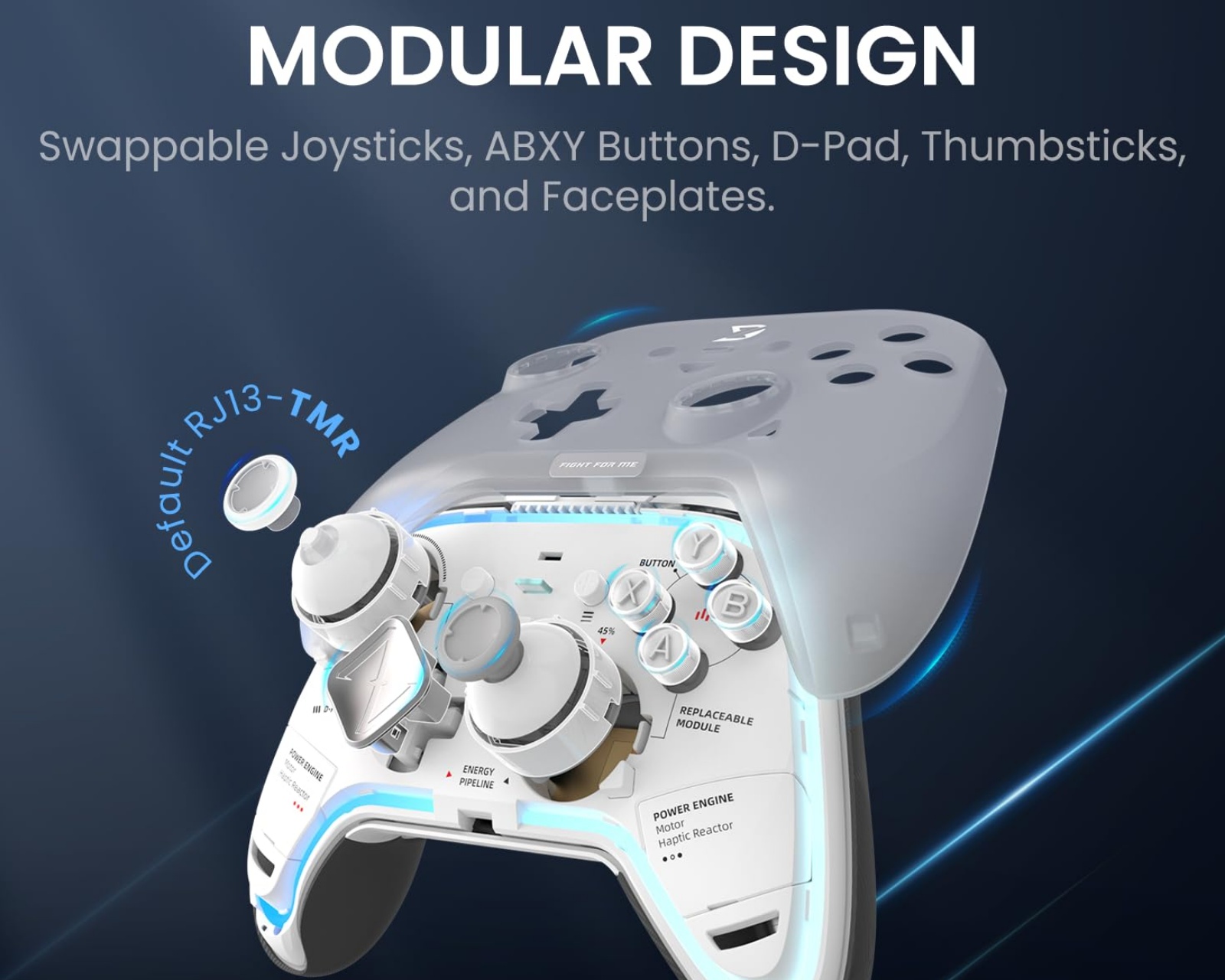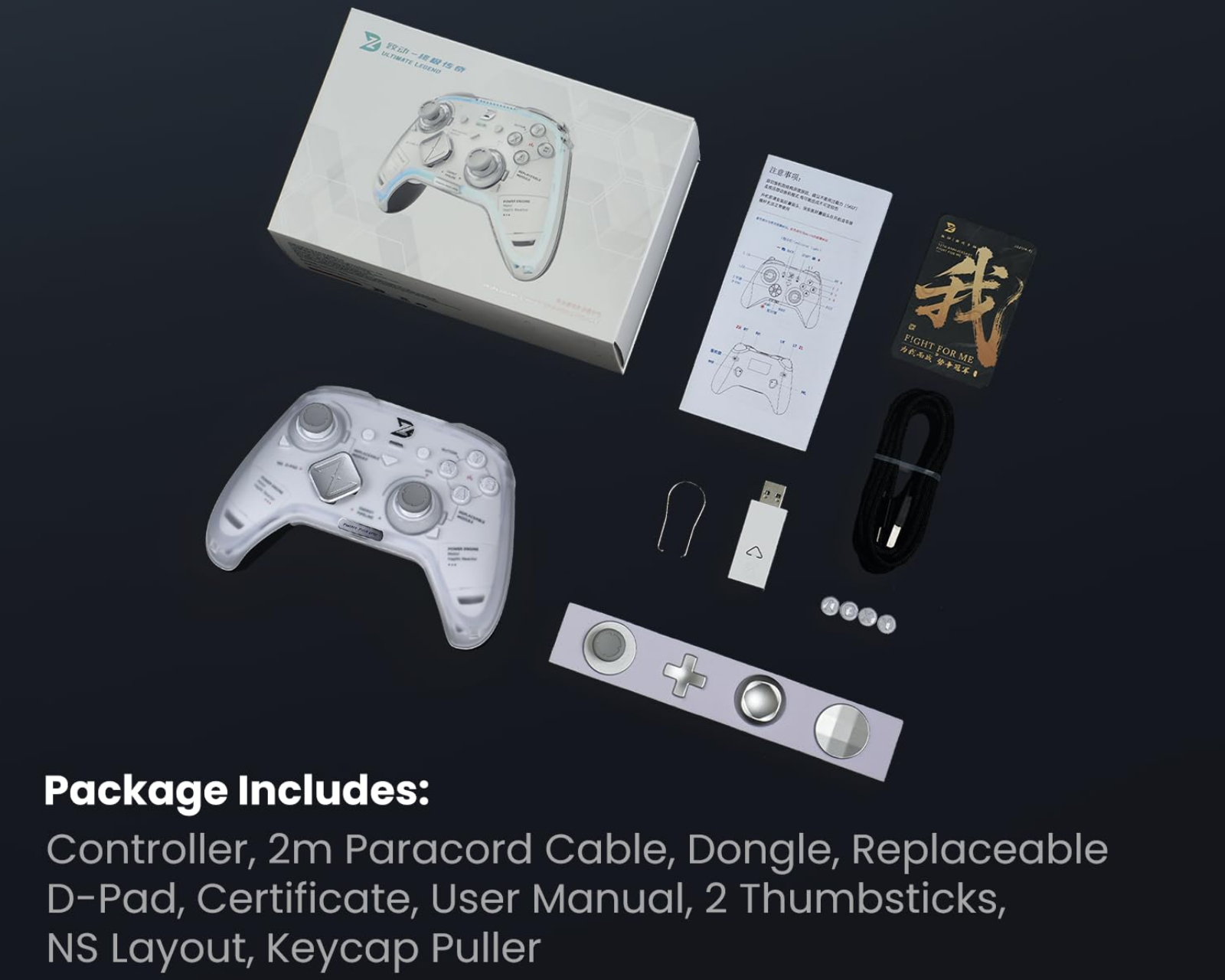 Ultimate Legend Wireless Controller is a gamepad from ZD that offers advanced features for gamers. It is equipped with six vibration motors and eight extra buttons, as well as a lifespan exceeding 100 million presses. This makes it ideal for both casual and hardcore gamers seeking high performance and long-lasting use. The controller's D-Pad has an activation force of 90gf and a button movement of 0.8 mm.The product supports multiple platforms, including Nintendo Switch and Windows 10/11, as well as Android and iOS. It offers three types of connections: 2.4GHz wireless, Bluetooth, and a wired mode to ensure a smooth and lag-free gaming experience. The joystick has an ultra-high polling rate of 3000Hz in wired mode, which minimizes latency and increases in-game precision. Hall triggers that are adjustable provide either ultra-sensitive control or tactile feedback depending on the player's preferences.