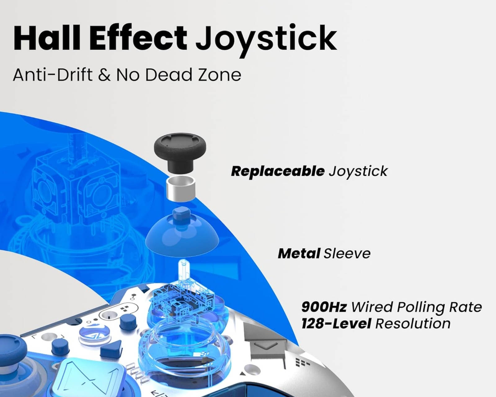 ZD O+ Excellence Wireless Controller is a game controller from ZD that provides support for multiple platforms, including Switch/Switch2, Windows 10/11, Android, iOS, and Steam. It features a modular design that allows for customization of joysticks, buttons, and faceplates. The controller also has Hall Effect joysticks and remappable buttons for a tailored gaming experience.The controller has a swappable joystick system that enables the replacement of components to customize the layout. It uses Hall Effect technology with a 900Hz polling rate, providing precise control. Triggers can be switched between two different travel options to match the player's style. The button technology has a long lifespan and is designed for a responsive feel during use. The device also includes 4-motor vibration feedback for a more realistic experience.
