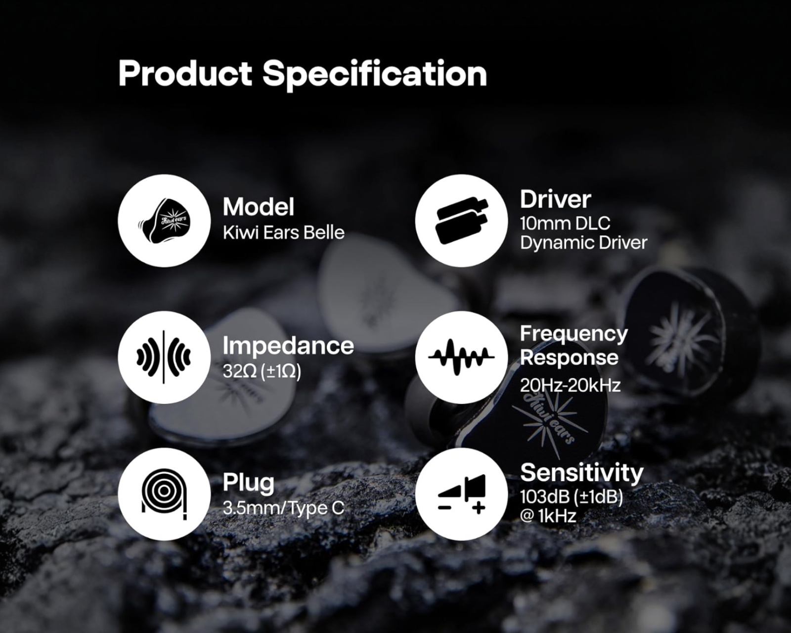 Kiwi Ears Belle is a professional in-ear monitor (IEM) that combines a 10 mm DLC dynamic driver with an appealing design and high sound quality. With an impedance of 32 Ohms and a balanced tonal signature, Belle is designed to provide an engaging listening experience, whether it’s for music production, gaming, or live performances. It is a versatile headphone that handles various music genres with deep bass and clear midrange, making it ideal for both audiophiles and professional users.Built with CNC-machined metal faceplates, Belle offers a premium feel and durability. The latest generation of Kiwi Ears Diamond-Like Carbon (DLC) diaphragm contributes to a snappier and more responsive sound reproduction, with a total harmonic distortion (THD) of less than 0.1% at 1 kHz. Cable options include Type C and 3.5 mm, providing flexibility depending on device usage. The silver-plated cable maximizes signal transmission and the ability to reproduce high-frequency details, delivering a superior sound experience. Belle is intended for those seeking the best sound while on the go and during live performances.
