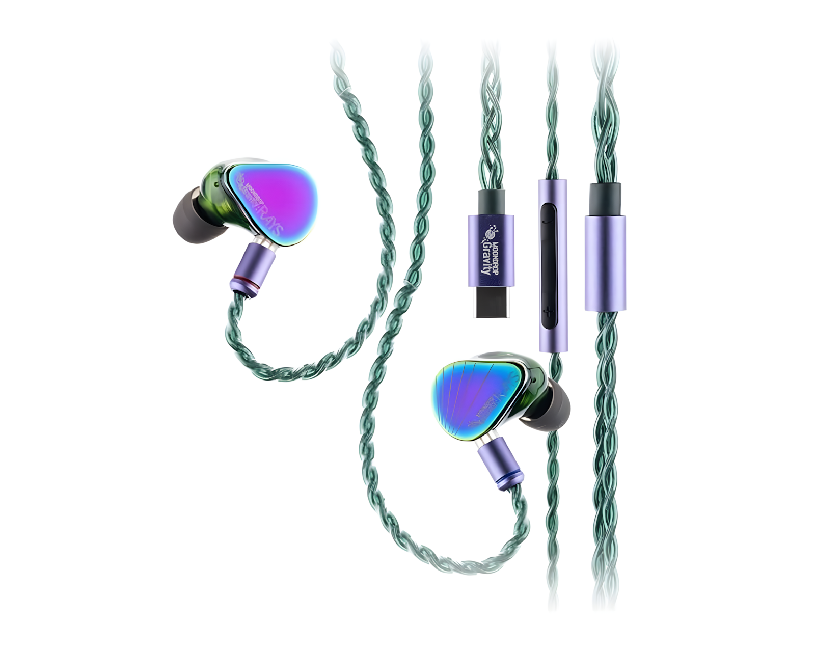 Rays In-Ear headphones are a high-quality audio solution from MOONDROP, designed for gamers and hi-fi enthusiasts. These headphones combine professional Hi-Fi audio technology with a versatile USB-C connection. With a sensitivity of 120dB/Vrms and a frequency response between 7Hz and 39kHz, they provide a detailed and dynamic audio experience.The quality of the materials used in the headphones is top-notch, utilizing medical-grade 3D printing to ensure both comfort and durability. The built-in DSP (Digital Signal Processor) allows for memory storage of audio settings, enabling users to customize the audio profile to personal taste. Ear-tips in three different sizes ensure an optimal fit, improving both sound isolation and user comfort. The headphones are equipped with an AI-based noise-canceling microphone that enhances call quality, making them ideal for both gaming and communication.