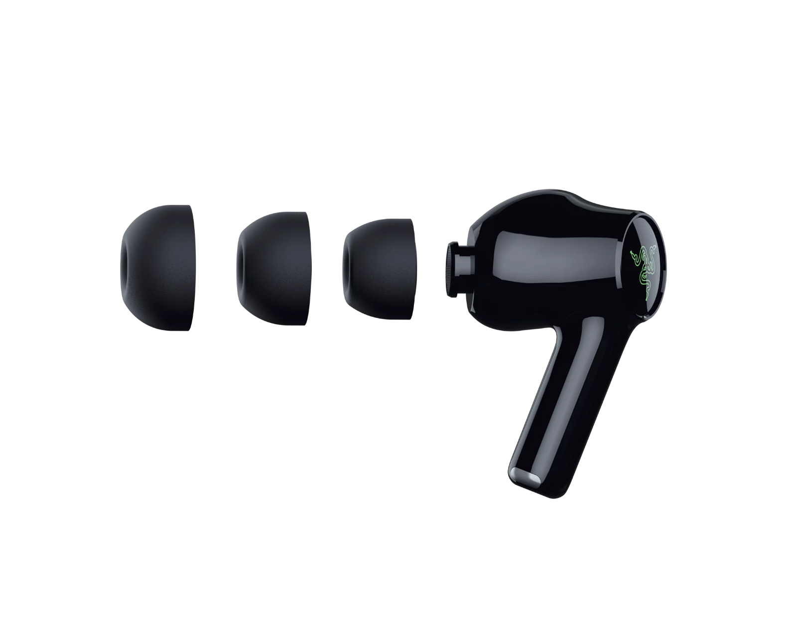 Razer Hammerhead V3 HyperSpeed is a pair of wireless in-ear gaming headphones from Razer that offers low latency and active noise cancellation. With support for both Razer HyperSpeed Wireless and Bluetooth 6.0, a stable connection and rapid audio transmission are ensured whether you're gaming on PC, console, or mobile. The included HyperSpeed dongle makes it easy to connect with minimal delay.Hybrid Active Noise Cancellation (ANC) uses internal and external microphones to reduce background noise, creating a focused gaming experience. Ambient Mode allows for the admission of surrounding sounds, which is useful for maintaining awareness of your environment. Razer HyperSpeed Wireless provides significantly lower latency than traditional wireless options, which is crucial for keeping audio synchronized with gameplay. This headset model also offers THX Spatial Audio for an accurate and three-dimensional sound experience. With a total battery life of up to 40 hours, along with the charging case, the headphones enable long-lasting use without interruption.