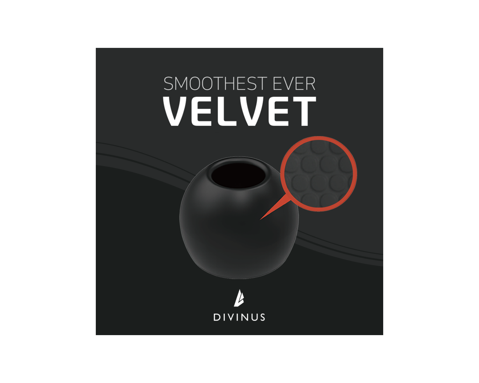 Velvet is an in-ear tip from Divinus that offers a custom and comfortable fit for use with a variety of in-ear headphones. These tips are specifically designed to provide the user with a better audio experience by creating a seal in the ear, helping to isolate sound and improve bass reproduction. The package contains three pairs in size (L). Velvet in ear tips are designed to work with in-ear headphones that have an exit diameter (nozzle) of 3 to 5 mm.The tips are made of elastic silicone material, which provides both comfort and durability during extended listening sessions. The flexible design allows for a secure and stable placement in the ear, reducing the risk of them falling out during active use. These in-ear tips are suitable for both cross-country skiing, training and more sedentary use, making them versatile.