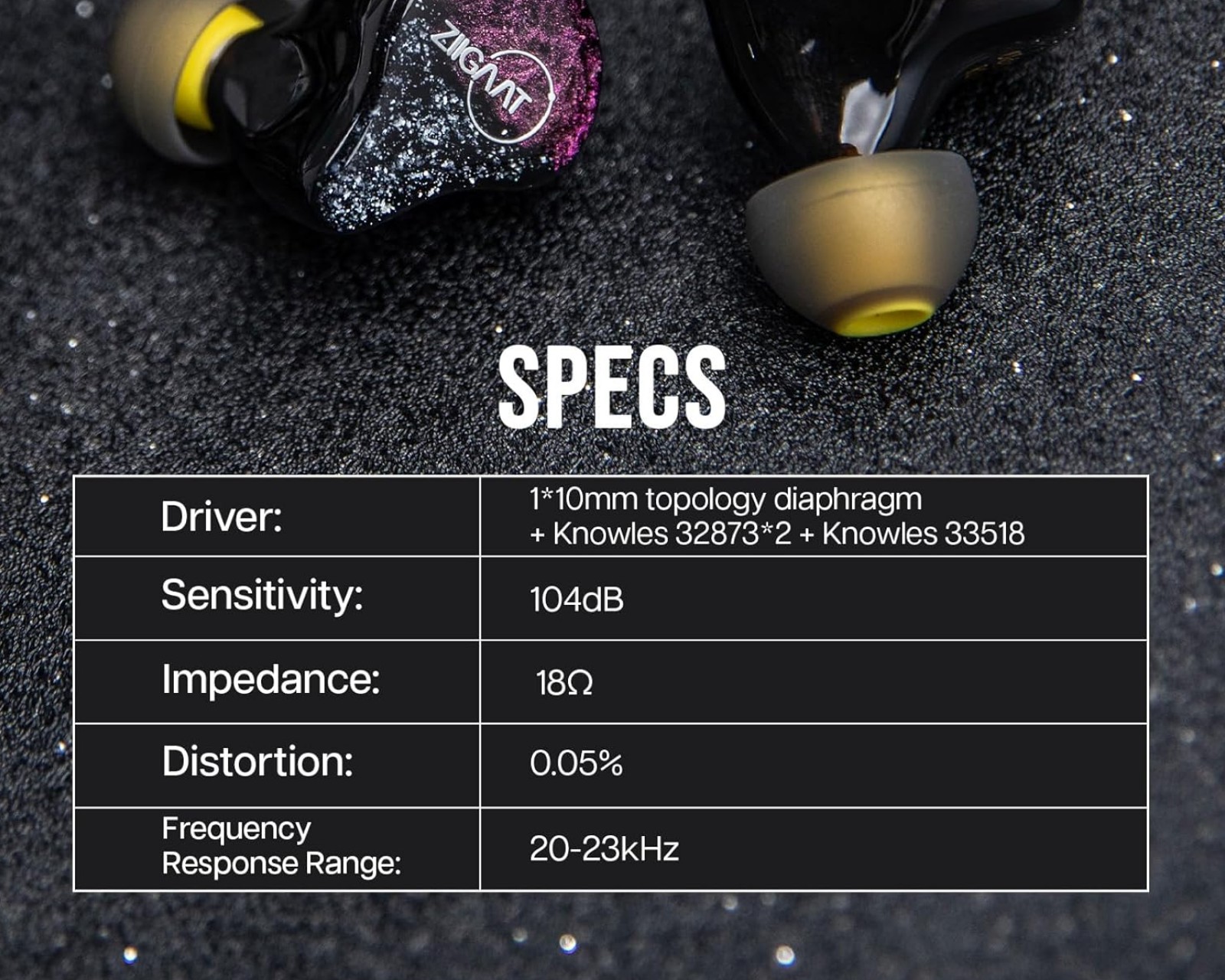 - Driver: 1 x 10 mm Topological Aperture + Knowles 32873 x 2 + Knowles 33518