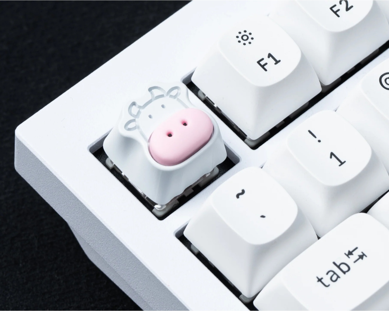 For a keyboard out of the ordinary, try the Keychron Cute Cow Silicone Aluminum Alloy Artisan Keycap. The key button in aluminum alloy offers stability and durability, the silicone nose is designed to give the user a comfortable feeling when pressing. This button is CNC engraved and gives both a unique feel and a unique look to the keyboard. The weight of 4.2 grams and the appearance is perfect for those who want to customize their keyboard into something of their own.- Material: Aluminum alloy, PC, silicone