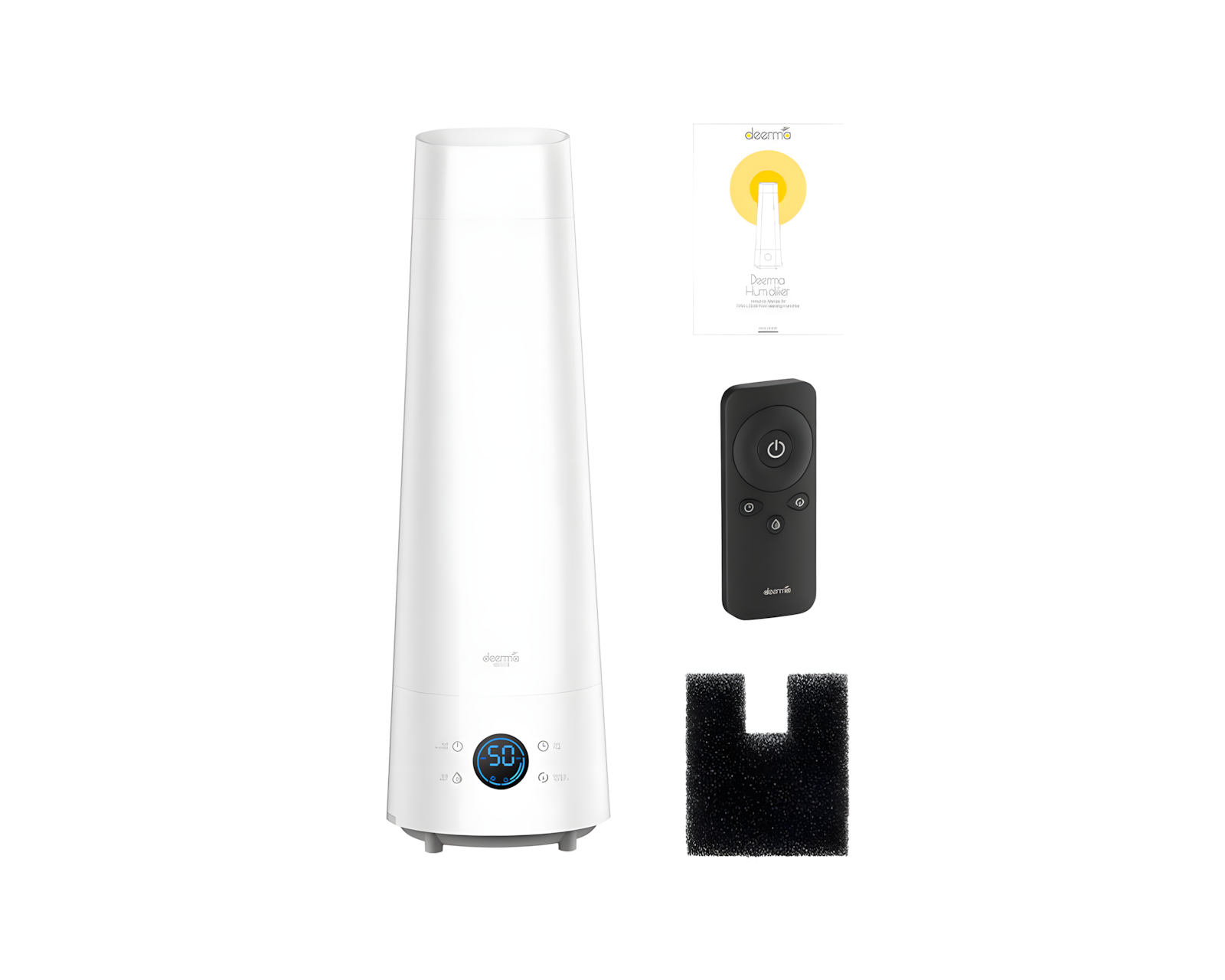 Deerma LD220 is an ultrasonic humidifier from Deerma that effectively maintains humidity levels in indoor environments. With a water tank of 4 liters, this unit can operate for up to 12 hours, making it ideal for prolonged use without frequent refills. The included remote control makes it easy to adjust the settings for optimal comfort.The humidifier has a wide 52 mm steam outlet that effectively spreads moisture up to 540 mm high, which both improves the quality of room air and adds moisture to the skin's surface. It offers two different humidity modes, either manual or automatic adjustment, depending on the room's current conditions. With a noise level of only 35 dB, it operates quietly, making it suitable for nighttime use. The modern cone-shaped design allows it to blend into various decors, whether placed on the floor or on a shelf.