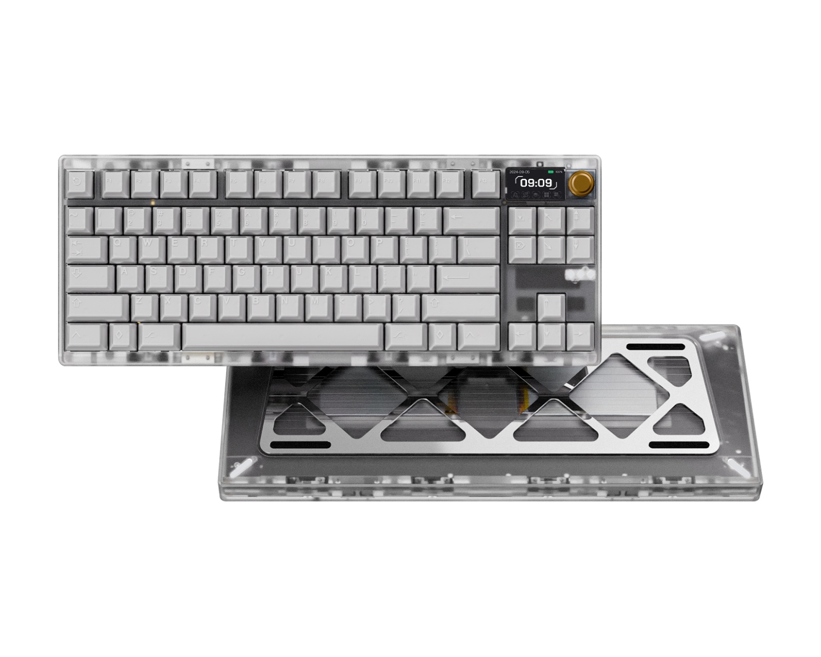 Please note that the keyboard requires assembly, no switches and keycaps are included.ZOOM TKL DYNA is a barebones kit from Wuque Studio that offers a versatile user experience. Its modular design allows adjustments to the screen and controls, giving users the freedom to customize their settings. The device features a 6063 aluminum casing and a screw-free modular mounting system for easy switching between different mounting options. It supports both wired connection via USB-C and wireless via Bluetooth 5.4 and 2.4 GHz.