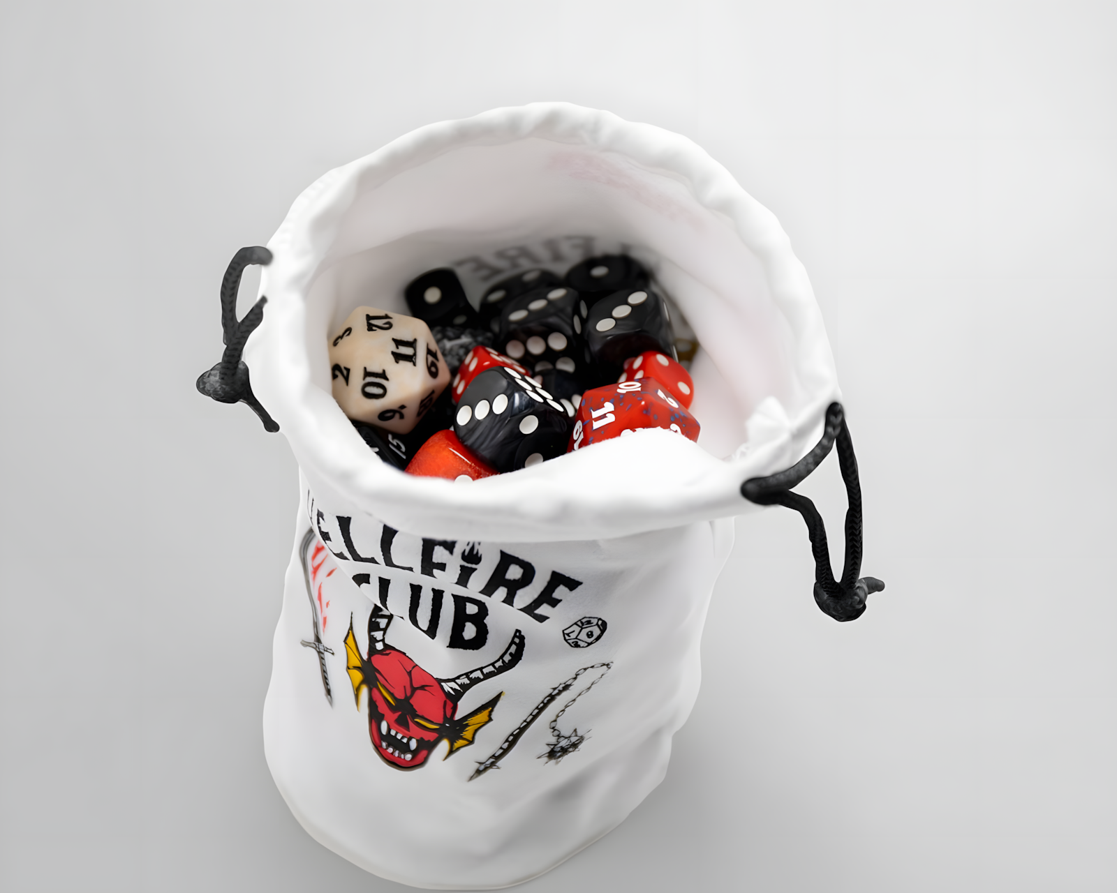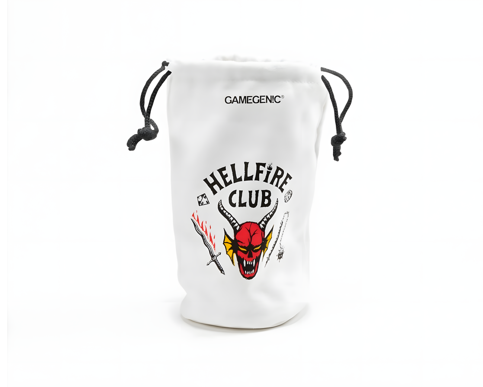 Stranger Things: Hellfire Club is a dice bag from Gamegenic that offers a soft and luxurious feel with its velvet-like material. The dice bag is designed to store and transport over 130 RPG dice, making it ideal for use in role-playing games, board games, and card games. It has an integrated bottom that keeps the bag upright and securely closes with a drawstring to prevent the dice from falling out.The dice bag is made of synthetic textile material and measures 90 x 170 mm. It is designed to be functional and easily accessible for use in various gaming situations. The iconic Hellfire Club motif from the series Stranger Things™ provides an interesting visual aspect and connection to popular culture. The packaging consists of a cardboard box that protects the content.