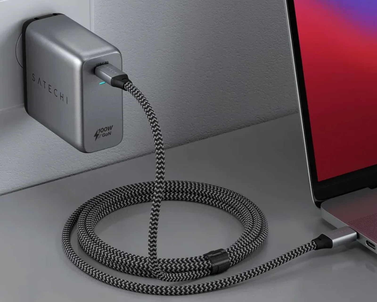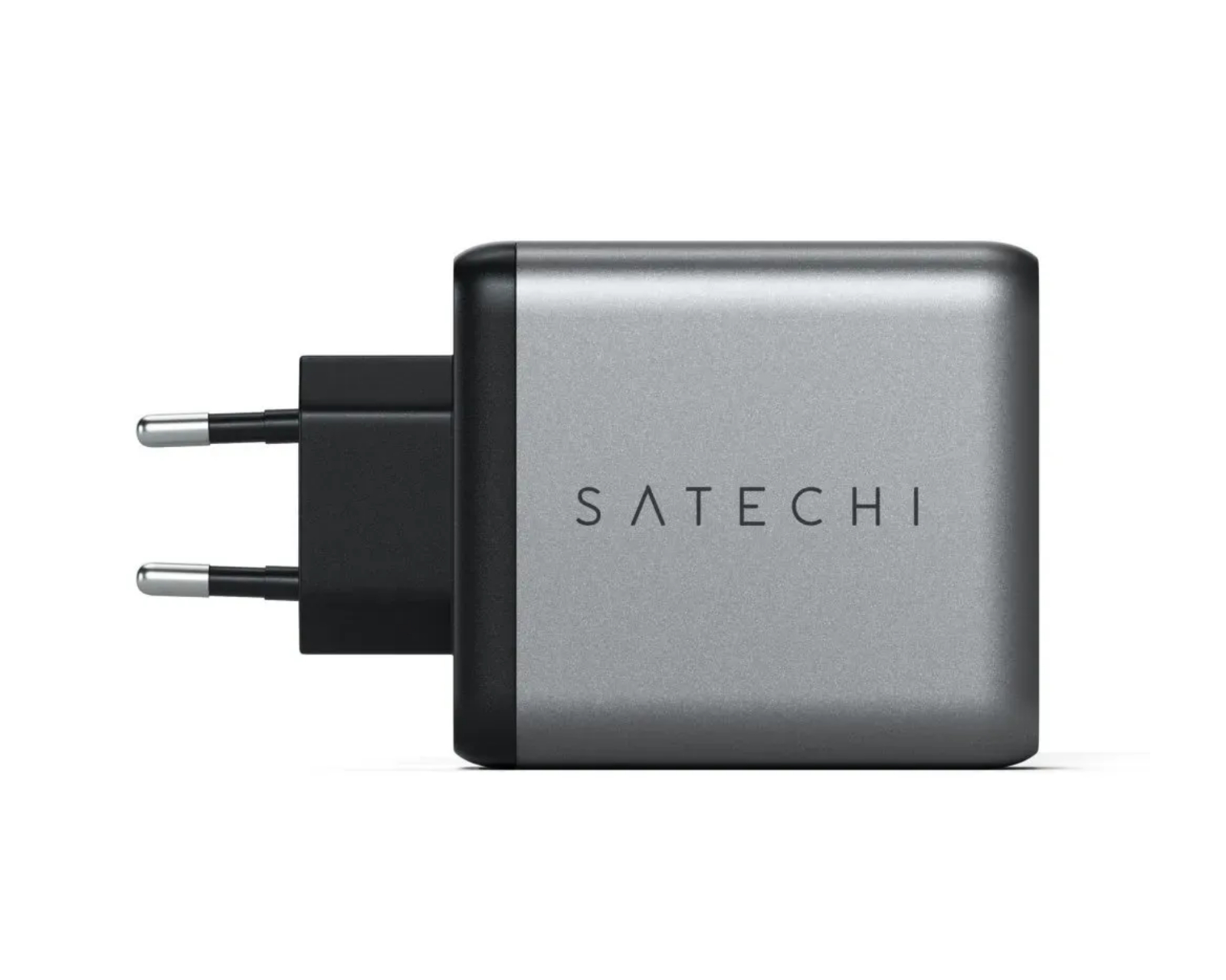 100W PD USB-C Charger is a charger from Satechi that offers high power and fast charging via USB-C. It is designed for use with modern devices, including laptops, smartphones, and other compatible gadgets. With a powerful 100W PD option, it can provide enough power to charge multiple devices simultaneously, making it ideal for both home and office use.This charger is made with Gallium Nitride (GaN) technology, which makes it more efficient and compact compared to traditional chargers. The GaN material allows for higher power transfer while reducing heat generation, thus increasing the product's lifespan. The charger's design includes built-in safety features such as overcharge protection and short circuit protection. Weighing in at 400 g and with dimensions tailored for portability, it is easy to take the charger anywhere.
