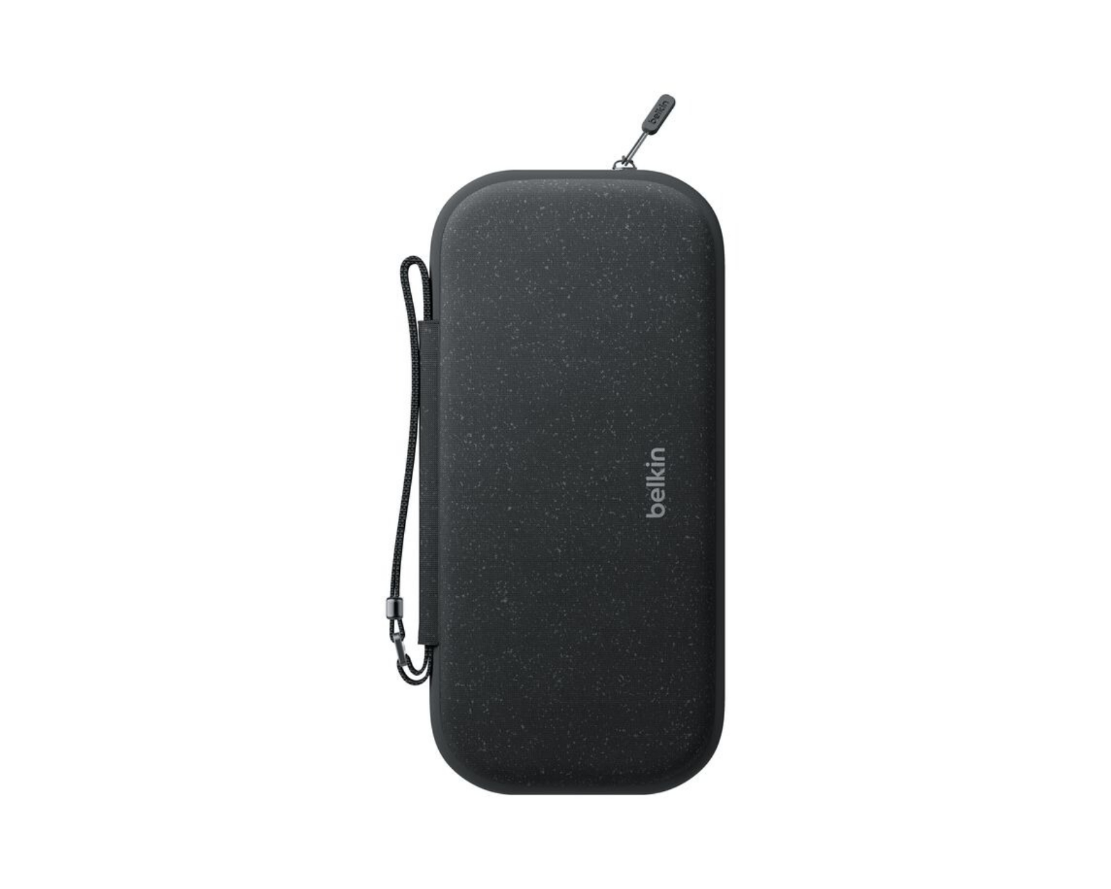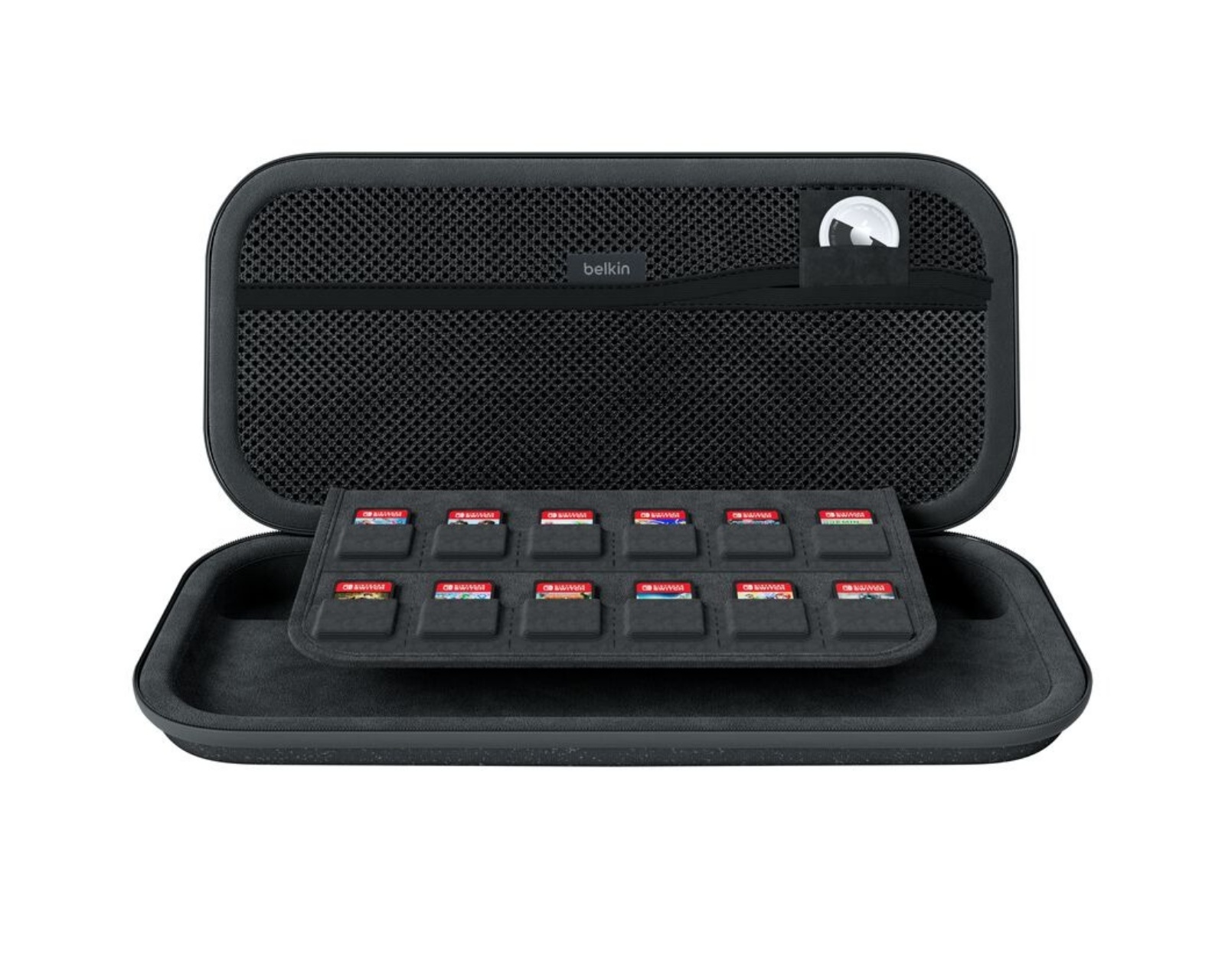 Gaming Travel Case for Nintendo Switch 2 is a case from Belkin that offers secure storage for your console during travel. Its compact design makes it easy to transport and is perfect for gamers who want to protect their equipment. The case also includes a practical slot for game cards, allowing you to keep your favorite games organized and easily accessible. Additionally, the case has a hidden AirTag compartment for security and tracking.The outer part of the case is made of durable and water-resistant polyester, while the inside is lined with brushed velour to protect against scratches. The robust zipper is designed not to get stuck, making it easier to use. The case is easy to carry with both a wrist strap and a handle, making it ideal for gamers on the go. Furthermore, the product comes in 100% plastic-free packaging.