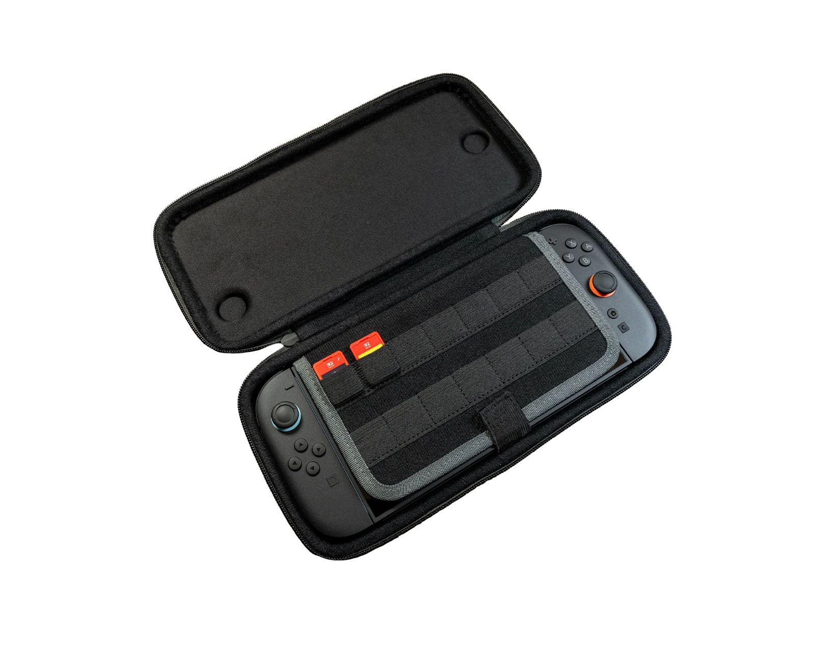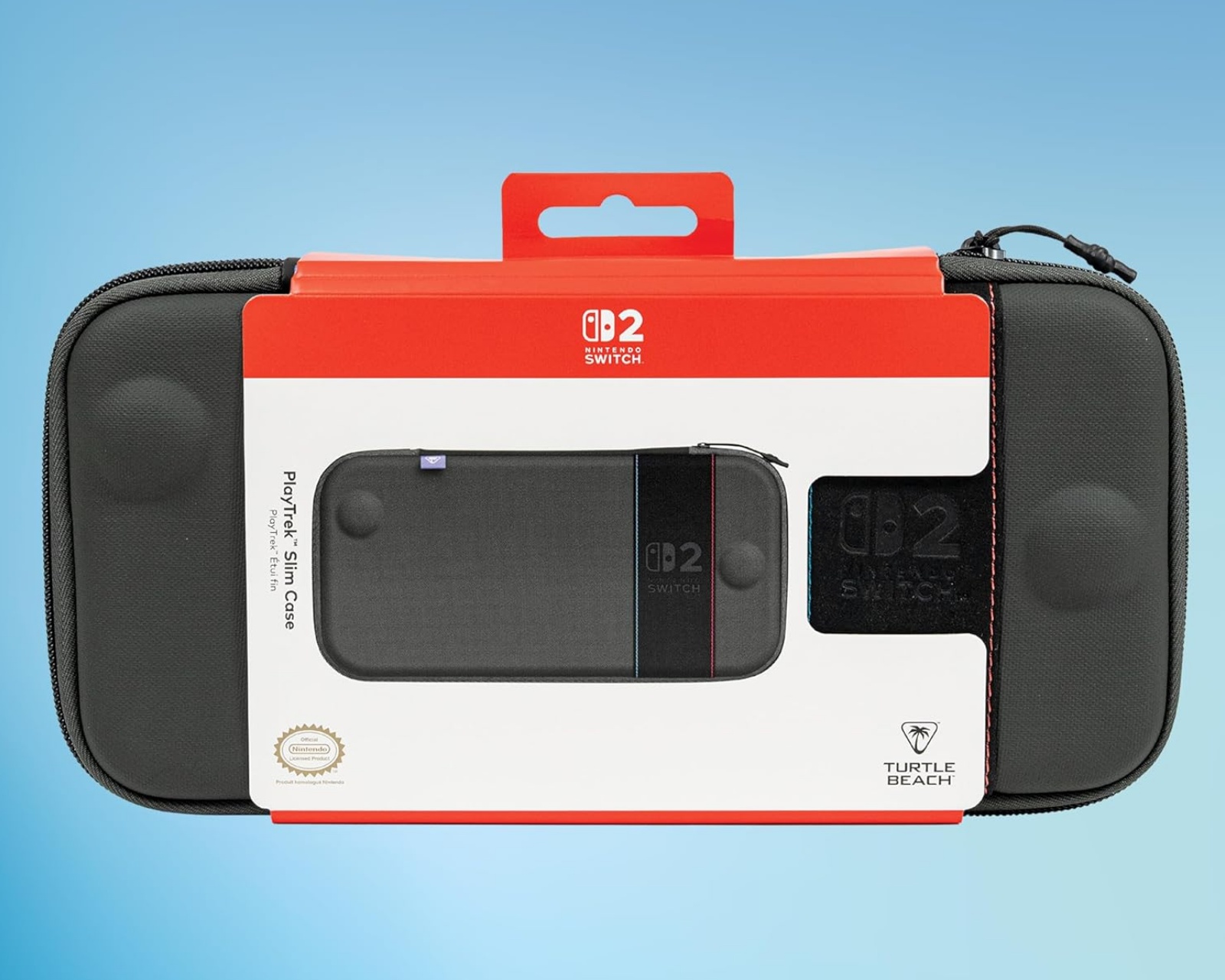 PlayTrek Slim Case is a hard shell case from Turtle Beach, designed for Nintendo Switch 2. It offers reliable protection with a travel-friendly design and is officially licensed by Nintendo. The case is easy to carry, making it ideal for both daily commutes and travel.The outer protection is made of a rigid EVA shell embedded in TPU-coated polyester in a sleek Charcoal Black finish. This ensures that the case offers protection against bumps and wear during daily use. Its slim profile ensures that it can easily fit into a backpack or a carry-on bag without taking up unnecessary space. The interior features a padded flap that protects the screen and also offers slots for game cards, allowing you to transport favorite games along with the console.