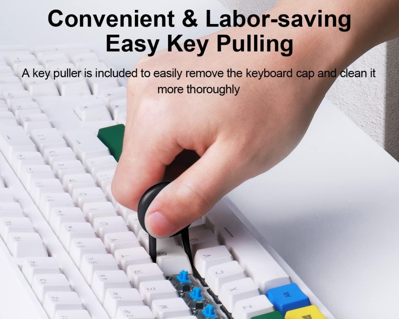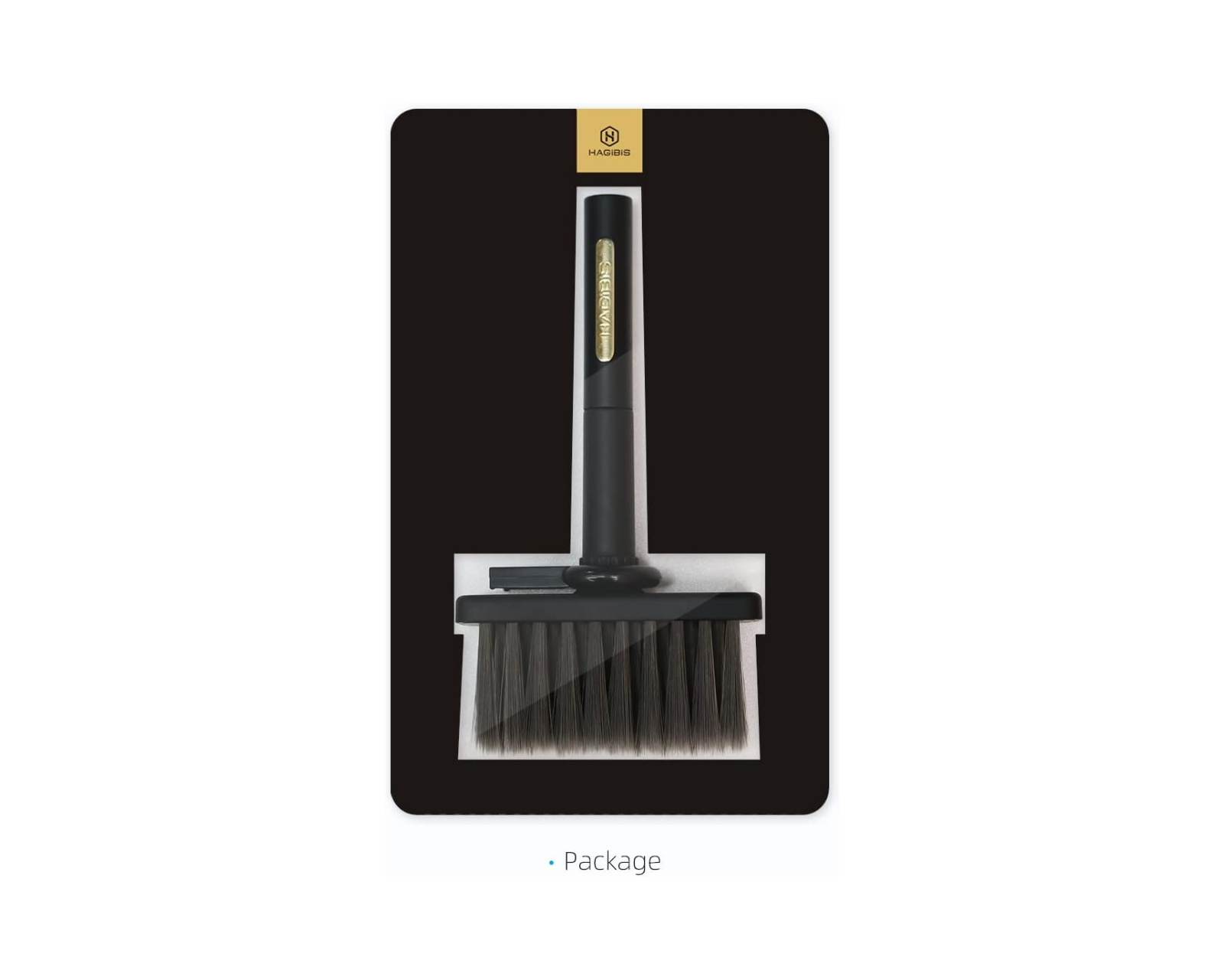 The cleaning brush CB01 is a computer accessory from Hagibis that effectively addresses the cleaning needs for keyboards and similar devices. With a dual head hidden design, it offers a versatile cleaning solution, while the soft and elastic bristles are constructed to optimize strength and durability. The ergonomic handle and key remover provide a smooth experience for gamers and tech enthusiasts who want to keep their equipment clean.The brush is made with high-quality materials, ensuring that each bristle tip is finely tuned to handle dirty surfaces without damaging them. Its three rows of bristles are designed to be straight and dense, allowing it to reach deep into the crevices of keyboards and other electronic devices. The unit is also designed to withstand deformation and has a longer lifespan, making it suitable for continuous use.