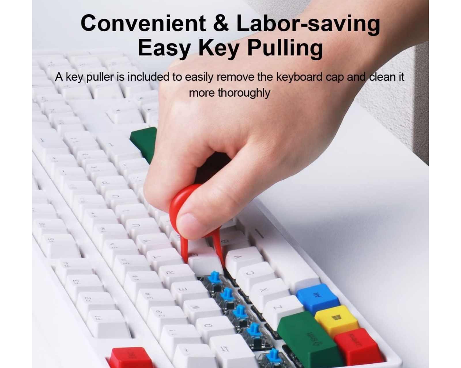 The cleaning brush CB01 is a computer accessory from Hagibis that effectively addresses the cleaning needs for keyboards and similar devices. With a dual head hidden design, it offers a versatile cleaning solution, while the soft and elastic bristles are constructed to optimize strength and durability. The ergonomic handle and key remover provide a smooth experience for gamers and tech enthusiasts who want to keep their equipment clean.The brush is made with high-quality materials, ensuring that each bristle tip is finely tuned to handle dirty surfaces without damaging them. Its three rows of bristles are designed to be straight and dense, allowing it to reach deep into the crevices of keyboards and other electronic devices. The unit is also designed to withstand deformation and has a longer lifespan, making it suitable for continuous use.