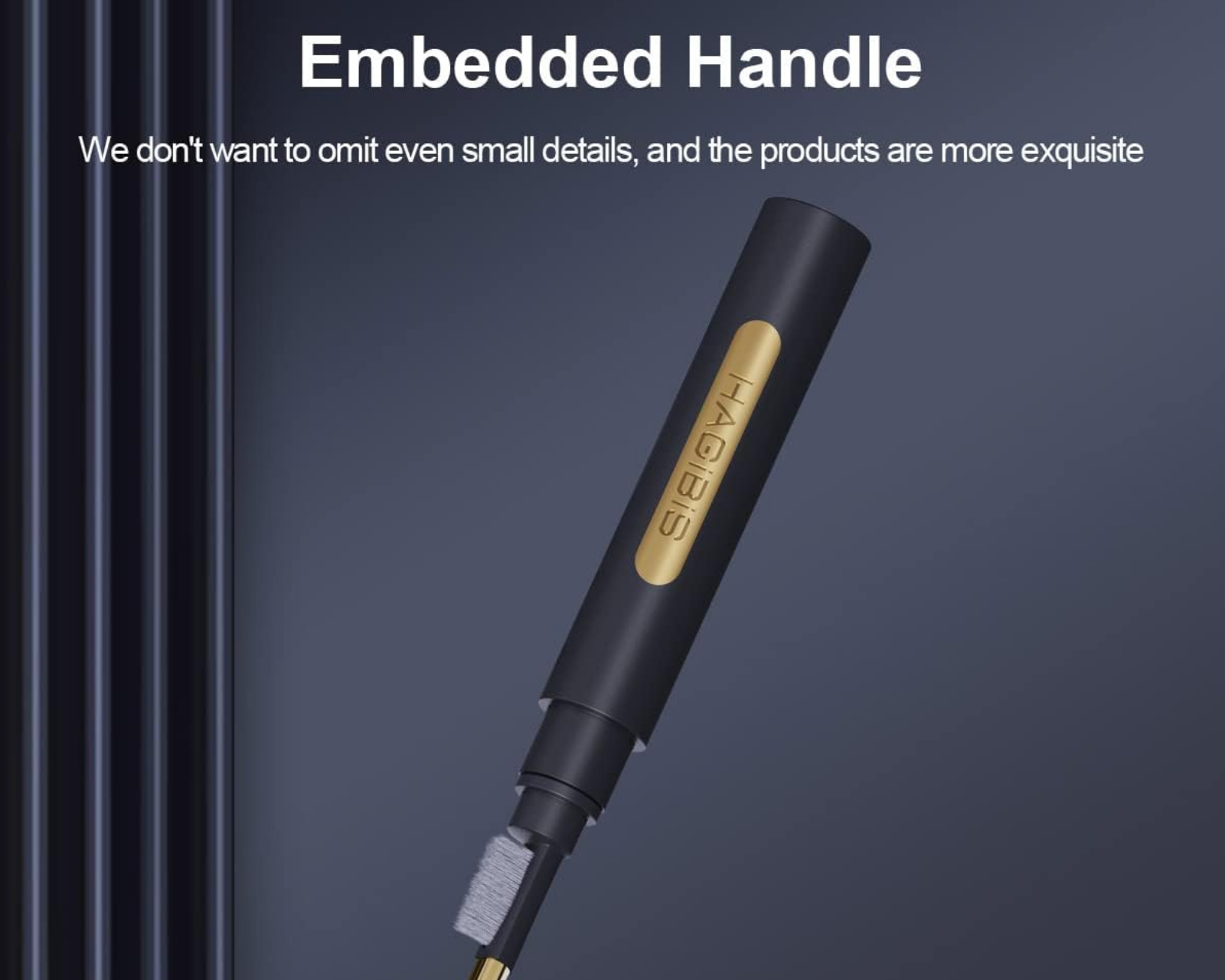 Hagibis cleaning pen CP01 is a cleaning tool for AirPods well as other Bluetooth headphones and their charging cases. It offers a multifunctional design with three tools: a soft flocking sponge, a high-density brush, and a metal pen. The product is designed to effectively remove dust and dirt from sensitive surfaces on the headphones and case. It is lightweight and compact, measuring 10.8 x 1.3 x 1.3 centimeters and weighing only 18 grams.The cleaning pen features a separated design with dual heads, allowing for targeted cleaning of varying surfaces. The flocking sponge is gentle and effective for cleaning the wireless charging case. The brush has high density and is specialized for removing dirt from audio jacks and other sensitive areas. The metal part of the pen facilitates cleaning of stubborn dust and dirt that can get stuck in hard-to-reach places. The built-in handle provides extra control during use.