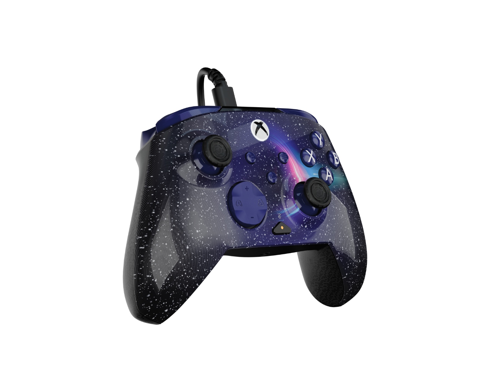 The Rematch Advanced Wired Controller is a gaming controller from Turtle Beach that offers high-performance features. Specifically designed for Xbox and PC, this controller features a unique glow-in-the-dark feature that absorbs UV light. This feature allows the controller to glow in the dark, providing a distinctive aesthetic. The controller is designed for gamers who prioritize both style and functionality.The controller is equipped with True Hall-effect hair triggers equipped with a 2-stop function that aims to improve precision and reaction time. It also has mappable buttons that can be programmed to enable faster commands during gameplay. Dual vibration motors together with impulse triggers allow for realistic feedback that enhances the gaming experience. In addition, the controller has a D-pad with audio controls that facilitate quick adjustment of audio settings.