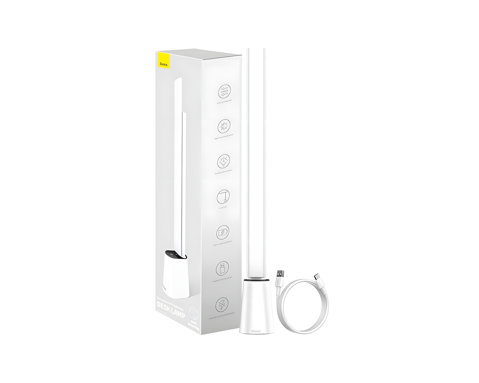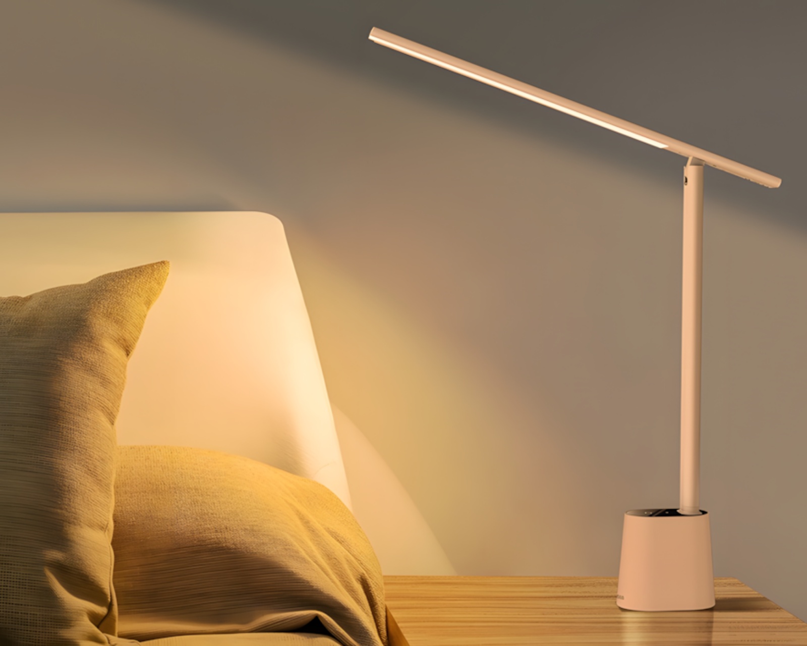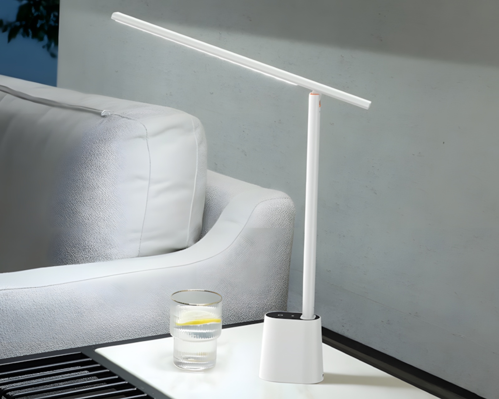A smart and rechargeable light source that offers automatic brightness adjustment. This lamp is designed to improve the work environment by providing a pleasant light similar to daylight, making it ideal for both reading and working. With three different color temperatures, the user can easily customize the light based on the activity, from warm to cool, depending on needs.The lamp is built with intelligent light distribution technology that automatically adjusts light levels based on the room's lighting. If the room is dark, the lamp increases brightness, while it reduces the light in brightly lit environments. The sleek design with a rectangular light distribution allows it to effectively illuminate the workspace without dazzling the eyes. The lamp rotates 180°, providing flexibility in adjusting the light angle. With a compact and foldable design, it is easy to transport and uses a long-lasting battery for wireless use.