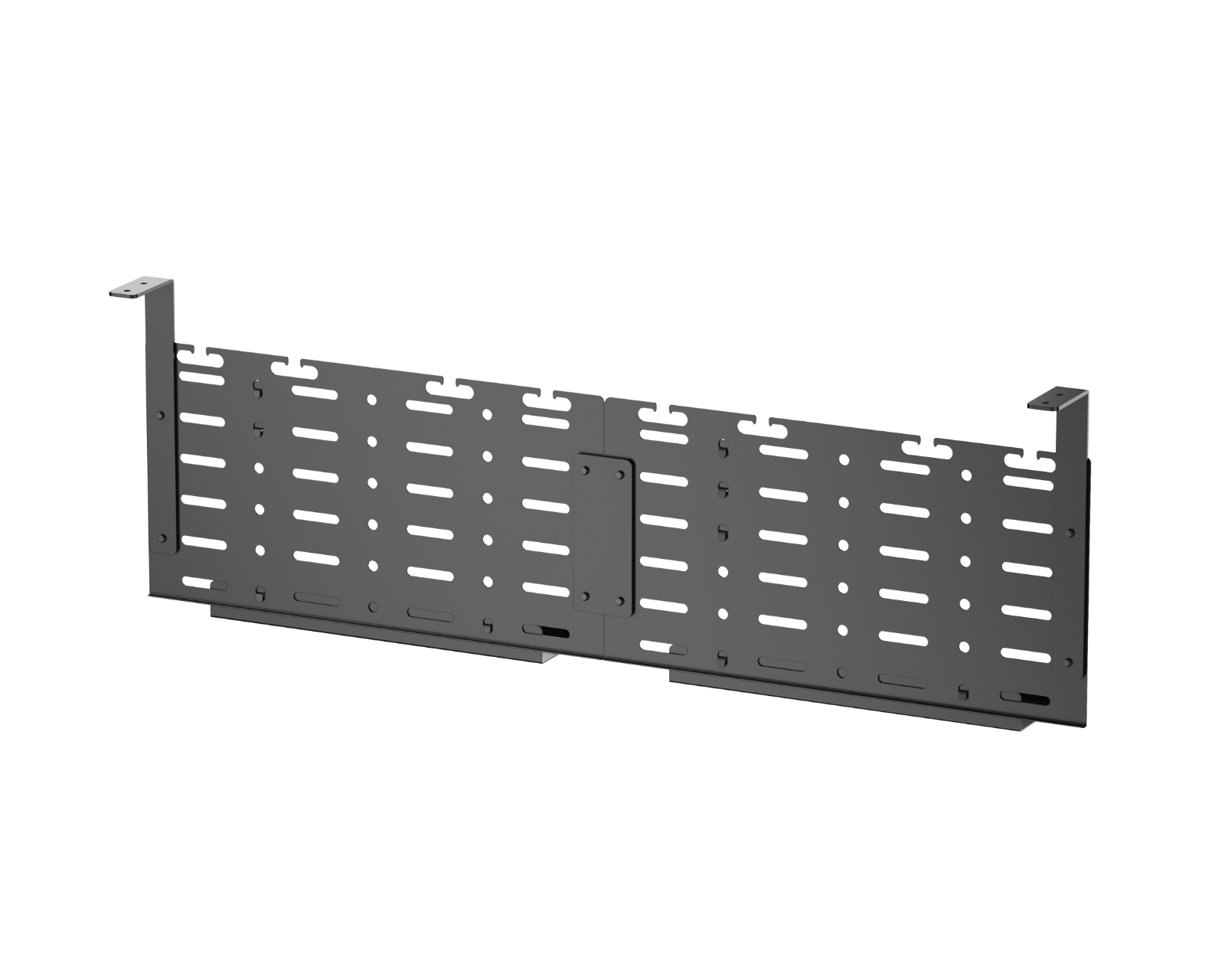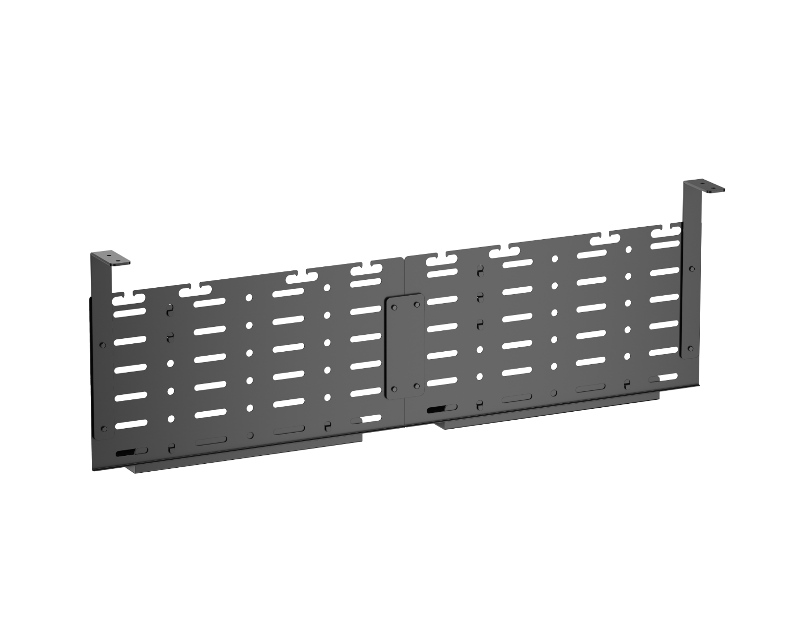 Vertical cable basket for the desk is a cable management solution from MaxMount. It has a simple design that hides cables and power cords to create a clean workspace. The extended tray can be adjusted for desks of various sizes and provides easy access to cables and power strips, facilitating installation and maintenance.The material of the cable tray is durable and of high quality, ensuring long-lasting use. It is specifically designed to be clamped under the desk so that it stands securely. It is efficiently equipped with multiple cable openings that allow you to manage cable movements and distribute them properly without tangling. The different cable slots help organize and stabilize the cables, contributing to a better and more efficient work environment.