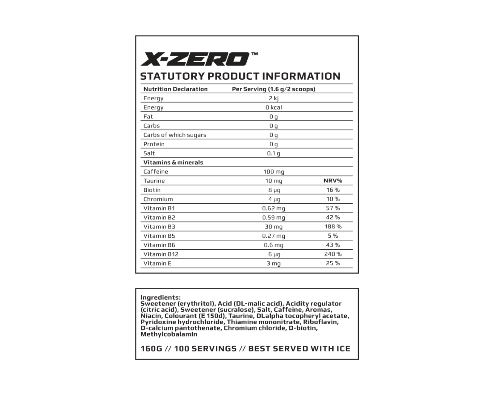 - Contains 100 mg of caffeine per serving