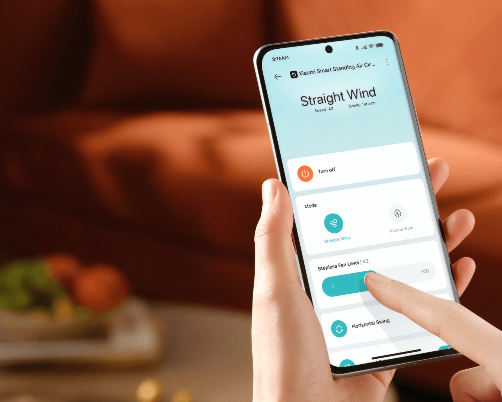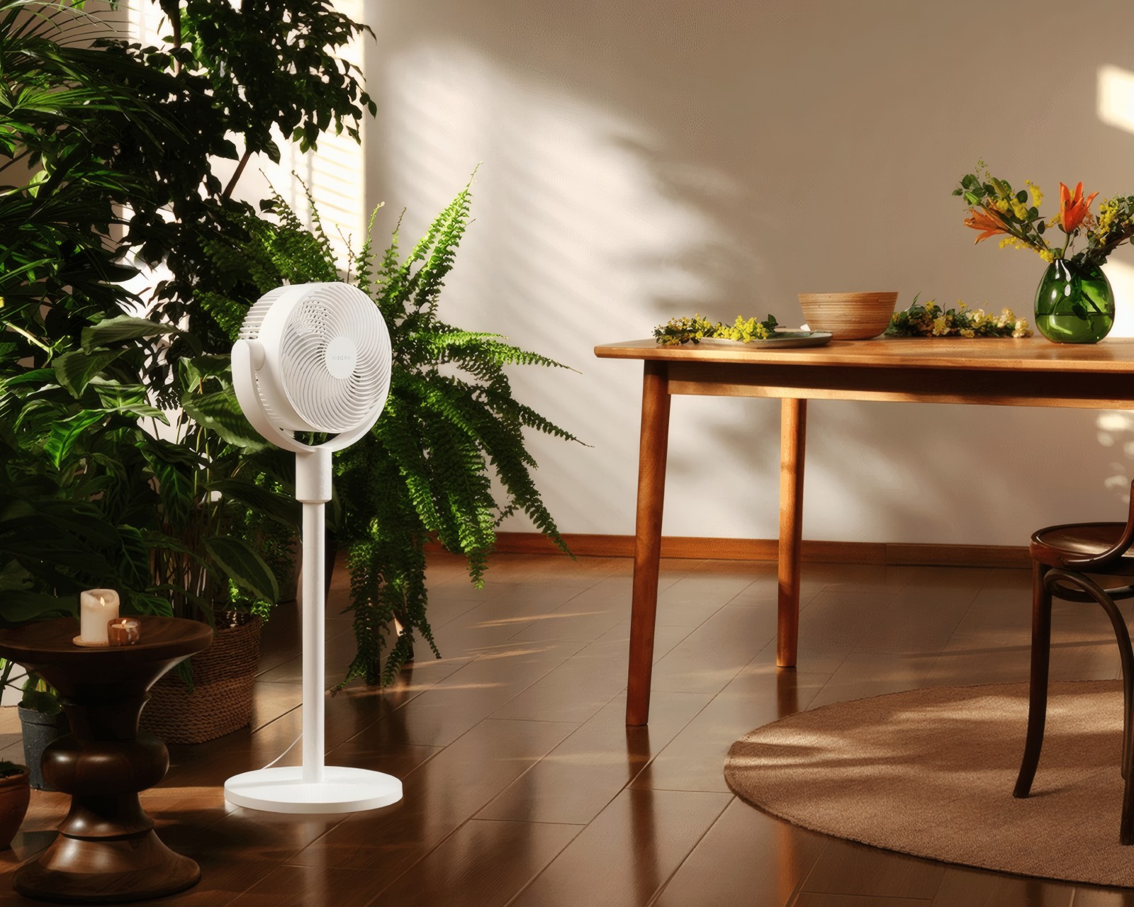 Smart Standing Air Circulation Fan is a fan from Xiaomi that offers powerful air circulation and efficient temperature regulation. Key features include a strong airflow capacity of 1440m³/h and a ventilation range of up to 13 meters. The fan is designed for use both on a table and as a floor-standing unit. This fan is constructed with a slim body, making it easy to place in various environments.It has a width of oscillation of 120 degrees horizontally and 100 degrees vertically, ensuring that the air reaches all corners of the room. With a DC inverter motor, it enables stable and energy-efficient operation that only requires 1.3kWh to keep the room cool throughout the summer. Its low noise level of 27.9 dB(A) at the lowest speed also makes it usable at night without disturbing sleep.