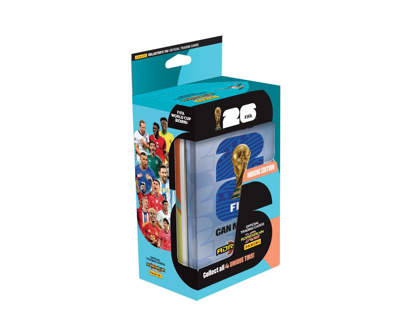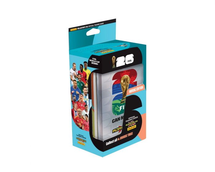 World Cup 2026 Mega Tin - Nordic Edition is a collector's box from Panini designed to provide you with a stylish and practical storage solution for your football cards. This Mega Tin contains 8 boosters, 3 Limited Edition cards, 1 Golden Baller, and 1 Online Coin card, making it an essential addition for all enthusiastic collectors. With its unique design and variety of cards, this tin offers an exciting way to expand your collection.The Mega Tin is made from sustainable materials that protect your cards from wear and damage. It provides safe storage that is both functional and visually appealing. The included boosters contain cards that are carefully selected to give you the chance to complete your collection, while the Limited Edition cards and Golden Baller add extra value to the tin. The Online Coin card also offers benefits in games and the community, making this product even more attractive to gamers and collectors.