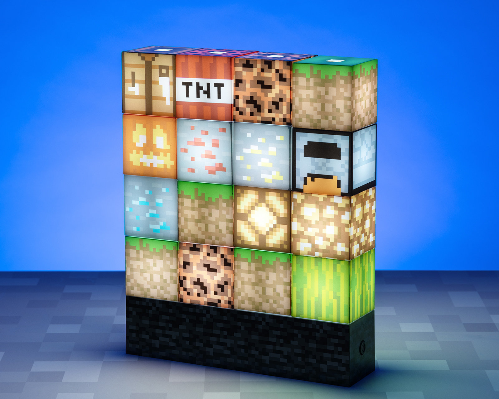 Bring the nostalgia and challenge of the popular game Minecraft into your home with this amazing Block Building lamp. Powered by an included cable and plug, the light features 16 illuminated blocks that can be arranged in endless combinations on the base to create and recreate familiar levels from the beloved game. With recognizable blocks such as grass, TNT, diamond ore, gold, redstone, and more, you can put your stamp on it. This incredible lamp is perfect for any gamer's room or office and will be an eye-catching feature in any home.This Minecraft decorative lamp is a great gift for fans of the classic game who enjoy a good design challenge. Make it even more special by customizing the individual pieces to create unique messages that will delight and surprise both family and friends!
