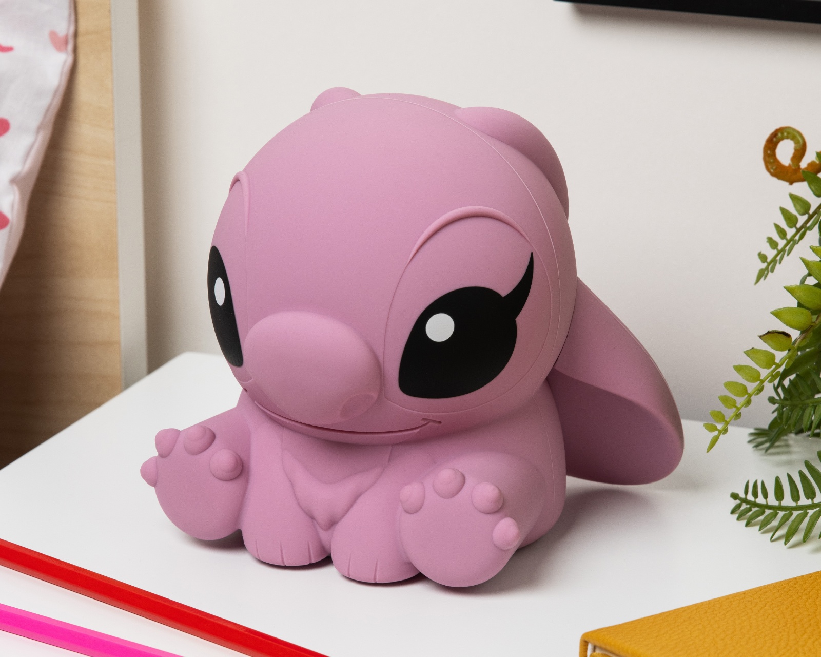 Angel SquishyGlo Silicone Lamp Rechargeable from Paladone is an innovative lighting solution designed to add a playful touch to your home. This 14.5 cm (5.7") tall lamp takes the shape of an angel and is made from child-friendly, soft silicone which makes it safe and easy to handle. With a smart auto-off feature that activates after 1-3 hours, it offers practical usage that syncs well with nighttime for both children and adults. It also has three different brightness levels, allowing you to customize it to create a calm atmosphere at bedtime.The lamp's components include an integrated non-removable rechargeable battery that can be charged with the included USB cable. Once charged, it is wireless, providing the freedom to place it anywhere in the room. The lamp's compact design makes it easy to move between nightstands and shelves. Since it is connected to the Lilo & Stitch universe, it is also perfect as a decorative detail for fans of the series, bringing a cozy and playful feel to the nursery or living room.
