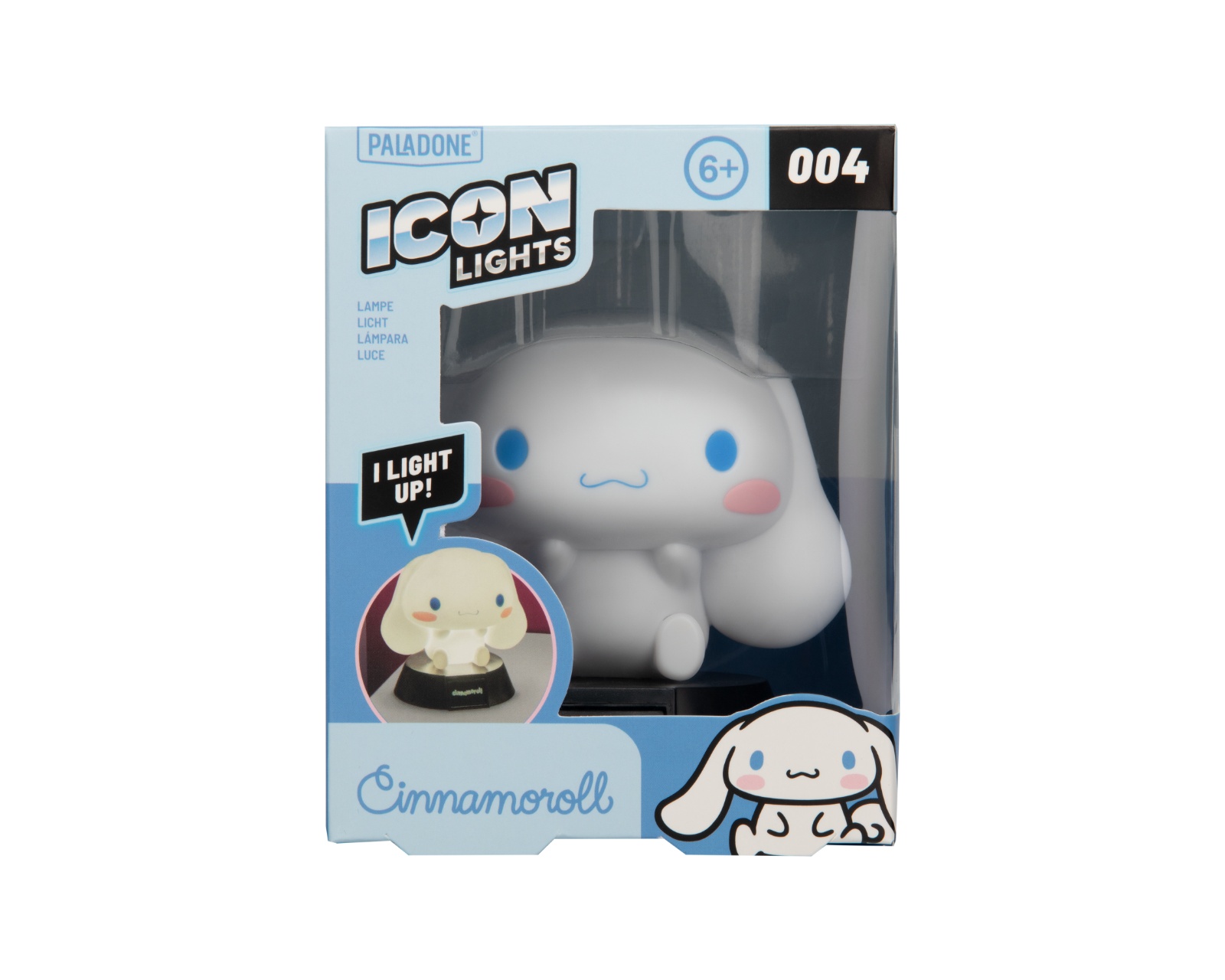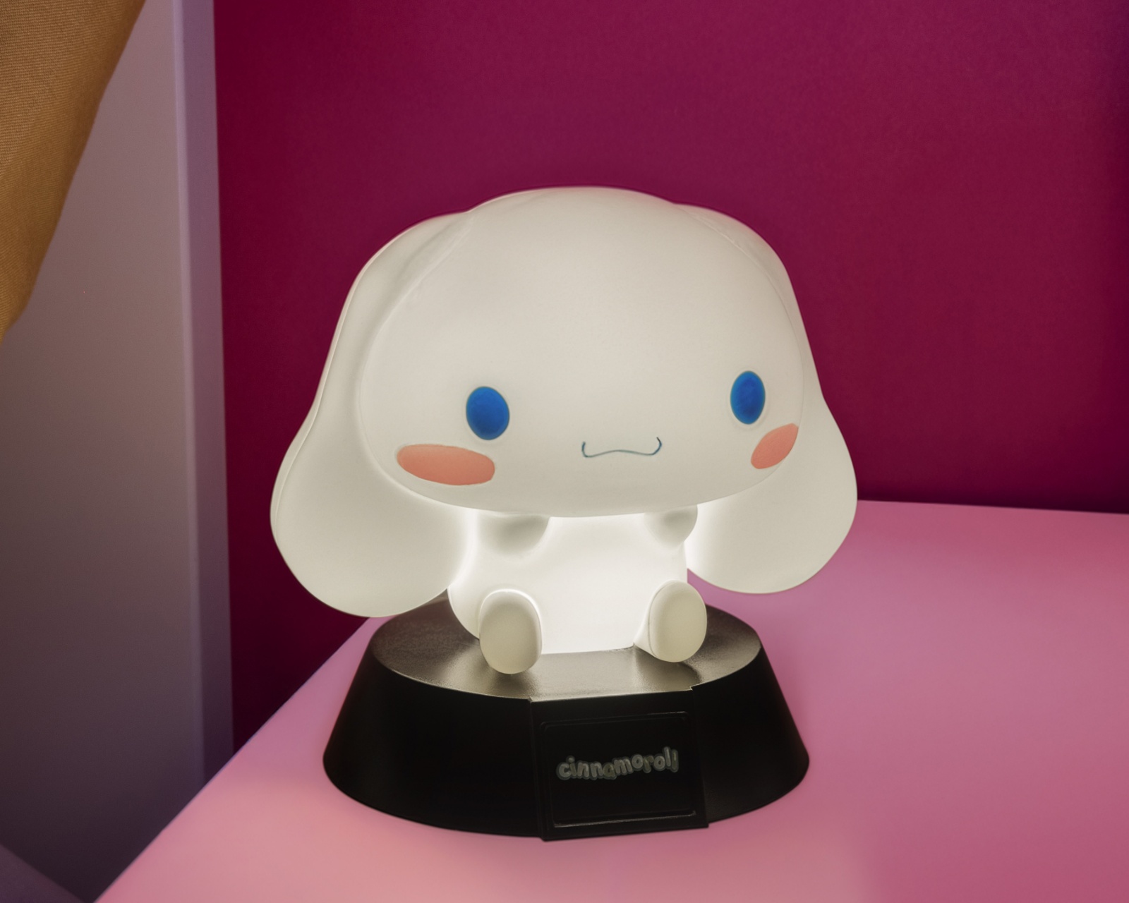 Cinnamoroll Icon Light is a decorative light source from the manufacturer Paladone that combines function and style. This cute figure of the well-known Sanrio character Cinnamoroll measures 9 cm in height and provides a soft and warm glow that is perfect for a bedside table or any room. The light is powered by 2x AAA batteries (not included), making it easy to place without the need for cords.The product is designed with a focus on both aesthetics and functionality, making it an excellent kawaii collectible for your home. Cinnamoroll Icon Light is rechargeable and offers a practical solution for soft lighting, perfect for nighttime reading or as a calming element in a child's room. Its 3D design and character-accurate details ensure that it is both a functional light source and a cute decor item. Cinnamoroll is known for his charm, making this iconic lamp also serve as a nice decoration on the shelf.