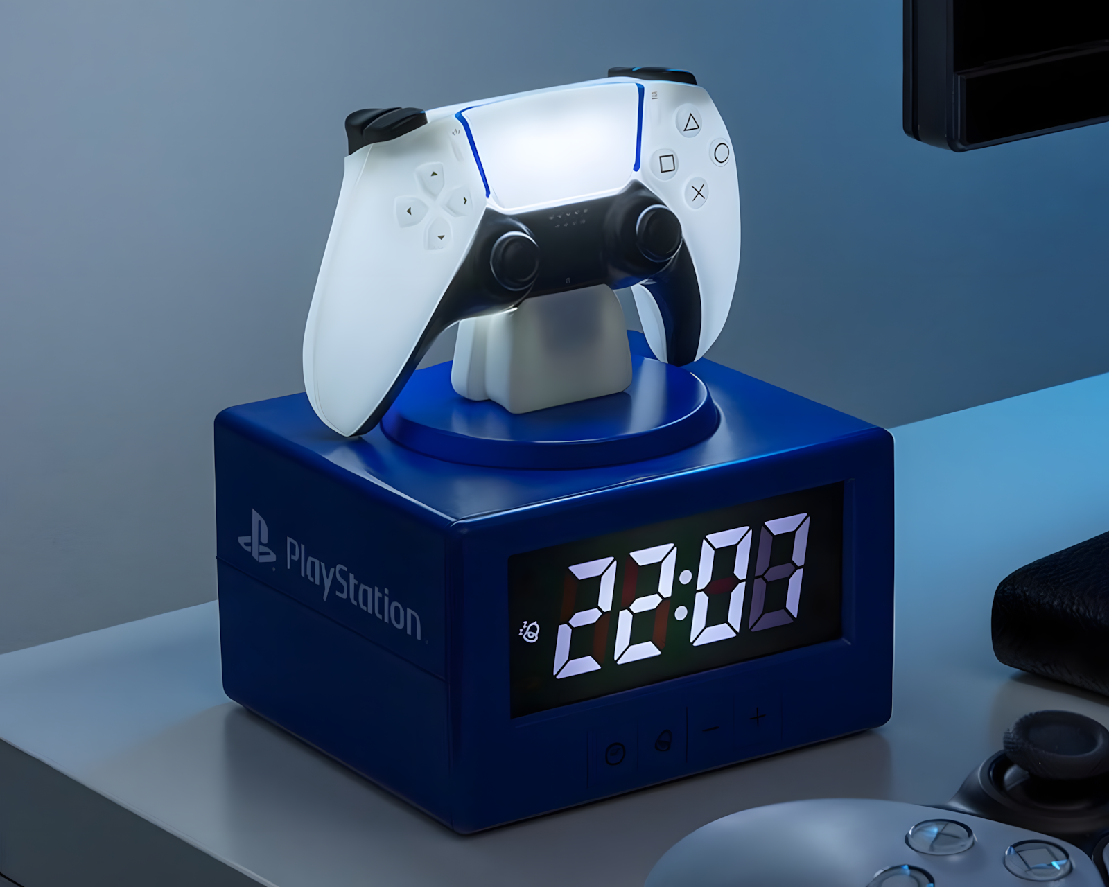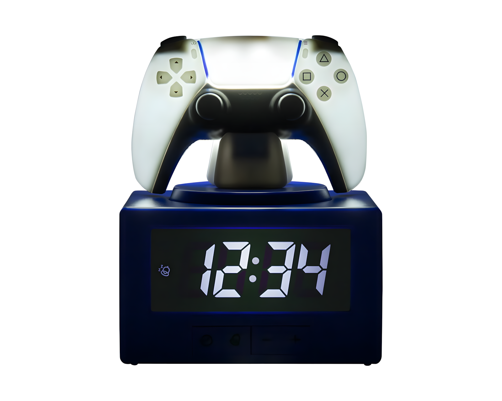 Playstation Controller Icon is an alarm clock from Paladone that combines functionality with an iconic design. Its clear display makes it easy to see the time from different angles, which is practical for all gamers wanting a sleek and informative detail in their room. With a height of about 18 cm, this alarm clock is a perfect companion on the bedside table or in the gaming room. It is officially licensed and makes a remarkable gift for both gaming enthusiasts and PlayStation fans. The alarm clock is powered by 3x AA batteries (not included).Summary
