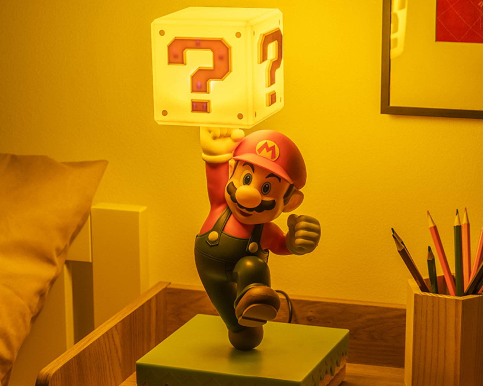 Super Mario Diorama Lamp is a unique lamp from Paladone that combines style and functionality. With a height of 35 cm (13.8"), it is designed in the shape of the beloved mustached hero and plays the official sound effect when turned on. The lamp offers three brightness levels, making it easy to create the perfect atmosphere in your home. It can be easily powered via USB with an included cable.Built with a focus on both quality and aesthetics, Super Mario Diorama Lamp is an officially licensed Nintendo product. Its durable construction makes it a sustainable and reliable decorative piece, while the three different brightness levels give users the flexibility to customize the lighting as needed. The insulation and components are of high quality, ensuring the lamp shines brightly and looks great, whether used in the living room or in a gaming room. It’s easy to switch between brightness levels by tapping the lamp.