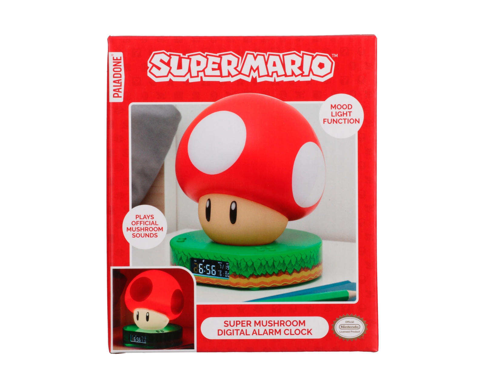 Check out the Super Mushroom Digital Alarm Clock! Inspired by Super Mario, this super cool alarm clock is the perfect addition to your bedside table. Not only will you wake up in the morning with a beeping alarm, but you'll also feel like part of the Super Mario family with its distinctive shape.This officially licensed product displays the time and day. With this user-friendly alarm clock with a unique design, you can easily set the alarm to suit your morning routine and make sure you start the day off right.