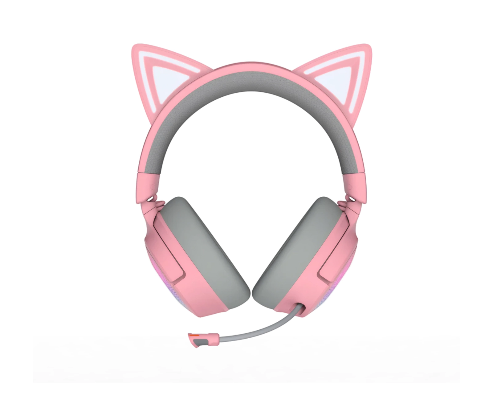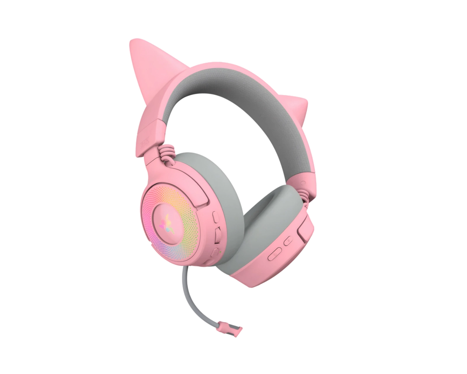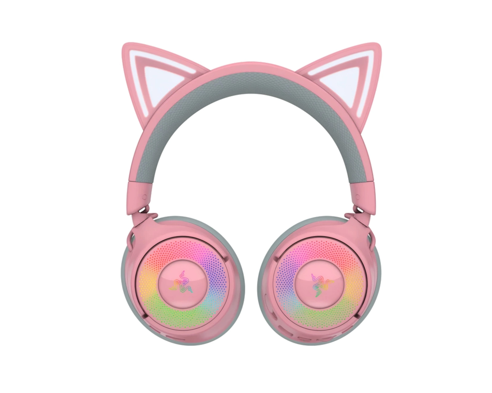Kraken Kitty V3 Pro is a wireless gaming headset from Razer, designed with distinctive cat ears and Razer Chroma™ RGB lighting. It offers three different connection modes, including 2.4 GHz and Bluetooth 5.3, as well as a super-wide microphone for clear sound reproduction. This headset targets gamers looking for style and functionality during their gaming experience.The headset features protein leather ear cushions with memory foam for increased comfort and sound isolation. The flexible and detachable Razer™ HyperClear microphone has a wide frequency response which ensures that the user's voice is reproduced clearly. Razer™ TriForce Titanium 40 mm drivers provide a listening experience with distinct highs, smooth mids, and deep bass, resulting in clear and balanced sound. The device supports THX Spatial Audio for 7.1 surround sound, providing a more immersive gaming experience.