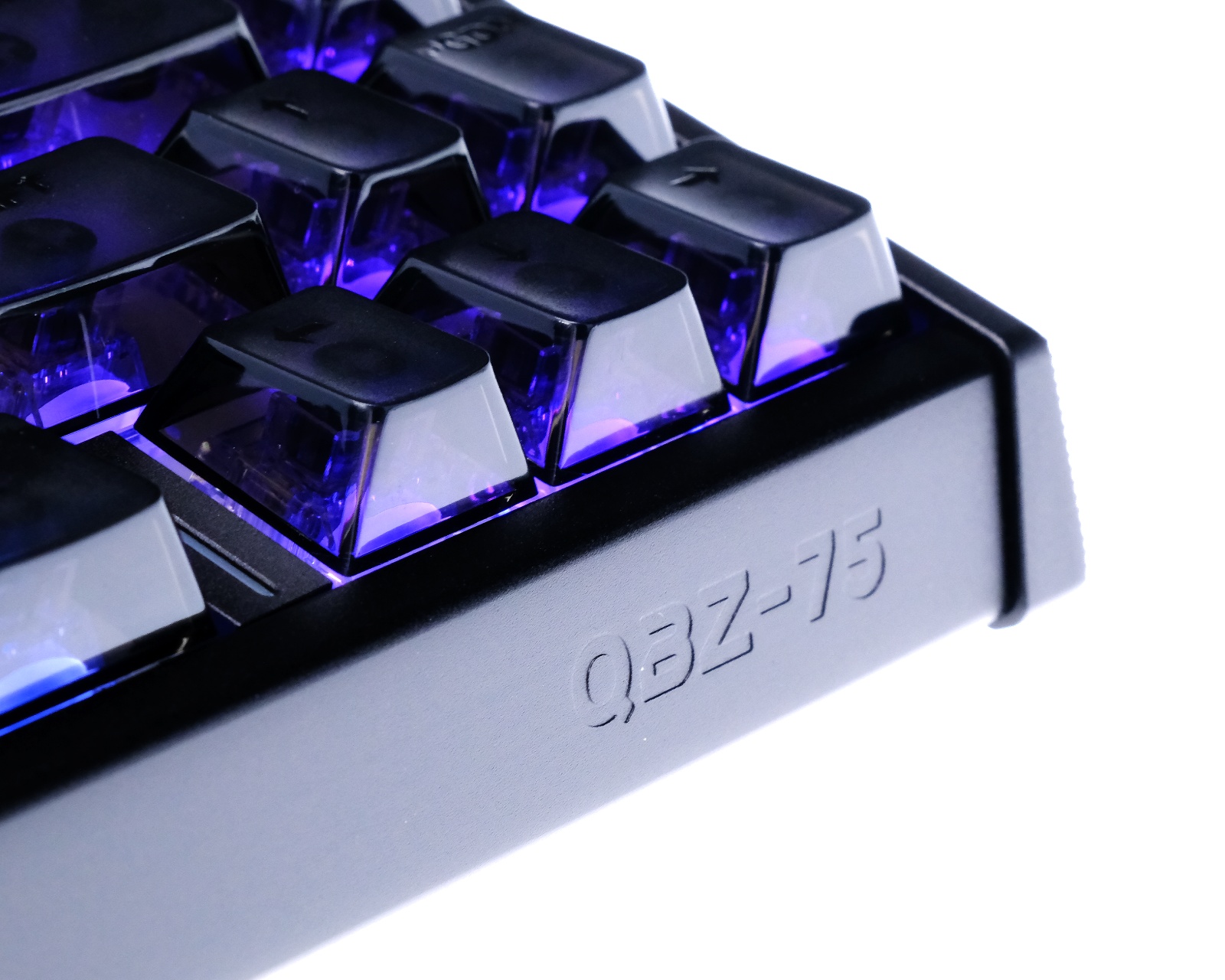 QBZ 75 HE - Black is a high-performance 75% keyboard built with a focus on acoustic control and extreme precision, framed in a robust outer shell of CNC-anodized metal with a brushed surface finish. The construction rests on a solid backplate that forms the base of the unit, while a polycarbonate (PC) positioning plate optimizes the typing feel by offering a more responsive experience than traditional metal plates. Between the bottom plate and the circuit board sits an extensive four-layer damping system – consisting of sandwich cotton, special film, switch pads, and bottom cotton – which effectively eliminates vibrations and creates a dampened, so-called "thocky" sound profile.The keyboard uses Northern Axis switches and is technically optimized for minimal latency with an 8k polling rate and a response time of only 0.125 ms via the included cable. This speed is combined with total precision through Rapid Trigger technology, allowing for an adjustable actuation range between 0.01 mm and 3.4 mm. Through the Be Ying Xin driver, the user has full control over advanced features such as SOCD, RT (Rapid trigger), DKS, and macro editing, while the characteristic Fog keycaps are illuminated by a south-facing RGB system with 16.8 million colors for a smooth and distraction-free light display.