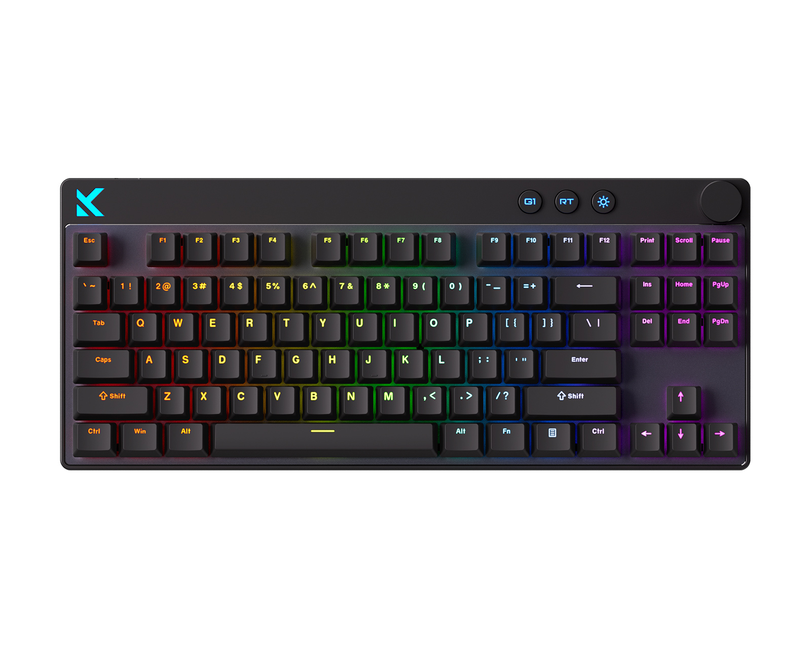 Mix 87 Hall Effect Magnetic is a keyboard from MCHOSE that combines advanced technology and functionality in a TKL layout. The keyboard is equipped with Apollo switches, providing high precision and an incredibly fast response time. With a polling rate of 8000 Hz and latency as low as 0.08 ms, it is designed to meet the demands of both e-sport enthusiasts and avid gamers.The build quality of the Mix 87 is robust with an upper mounting structure and five layers of sound dampening, contributing to a quiet and comfortable experience. PBT keycaps with Cherry profile offer a reliable feel and durability. This keyboard supports hot-swappable switches, meaning users can replace the switches without soldering. RGB lighting can be customized via the M HUB software, further enhancing customization options. The keyboard weighs 992 grams and comes with necessary accessories, such as a USB-C cable and a keycap/switch puller.