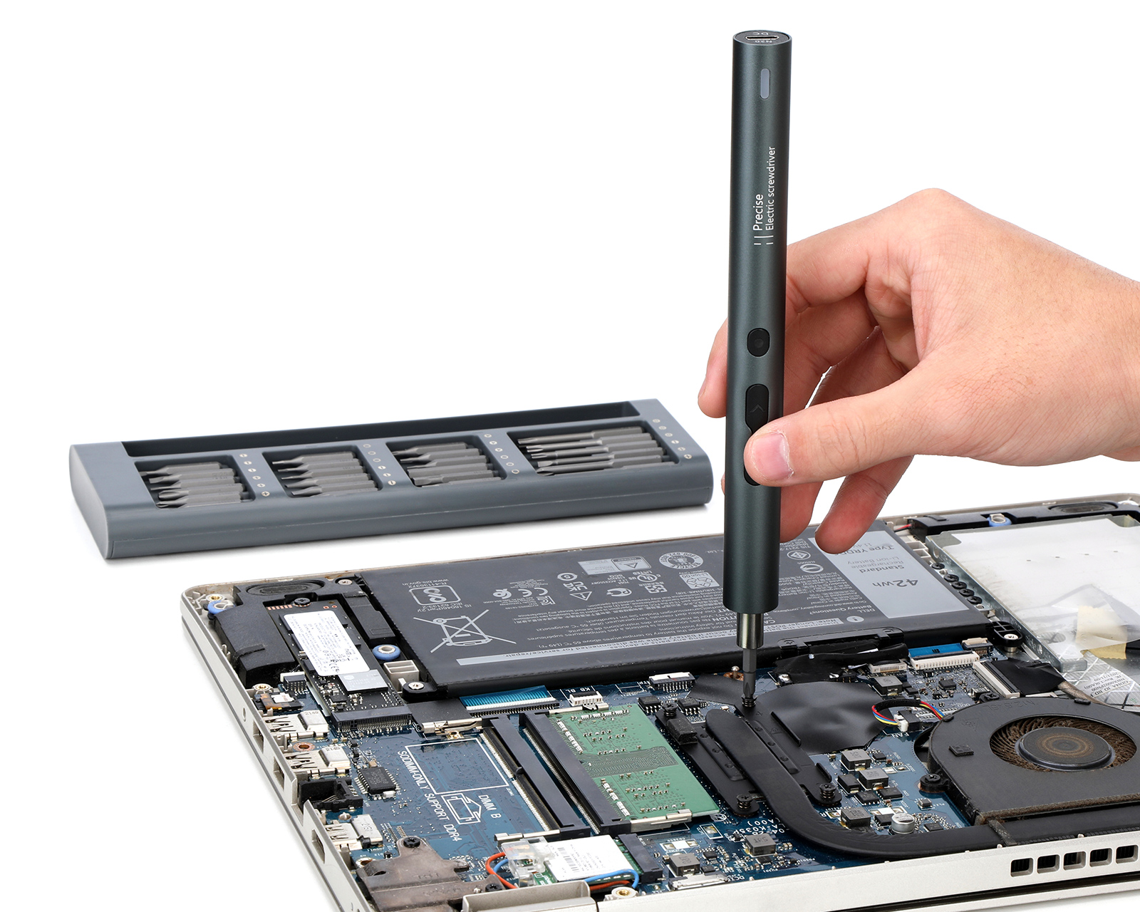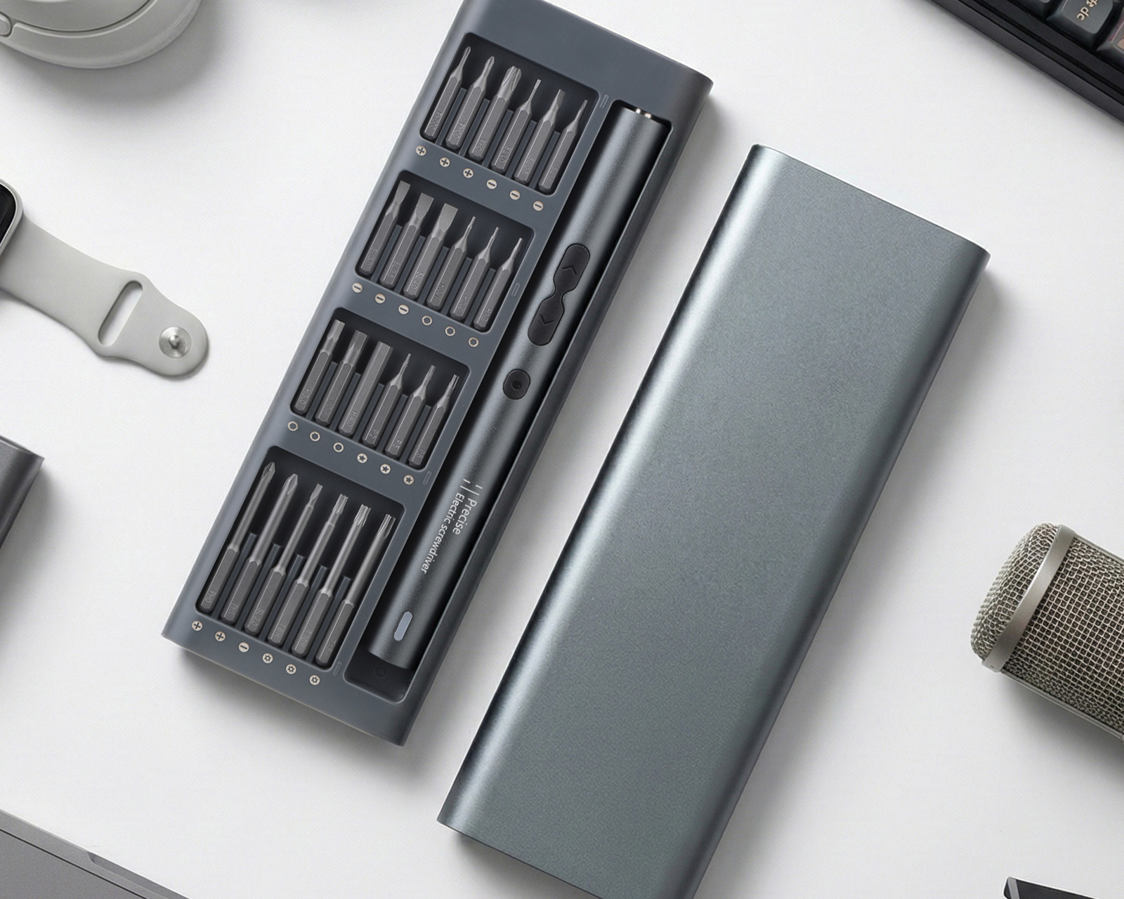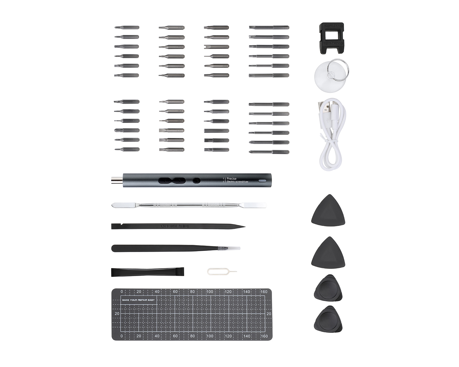 Electric screwdriver set from MaxMount offers a compact and efficient solution for precision work in assembly, service, and repair. The screwdriver delivers a maximum speed of 200 rpm and charges conveniently via USB Type-C. The 45 mm extended bit holder provides improved access to deeper and hard-to-reach screws.With an intuitive button press, you can easily switch between manual and electric mode, allowing full control depending on the task. The integrated 3.7 V 350 mAh battery can handle up to 350 screwdrivings per charge, ensuring high operational reliability during longer work shifts. The screw set includes a total of 48 high-quality S2 bits as well as a complete selection of opening tools and accessories, delivered in a durable metal case for professional use and easy transport.