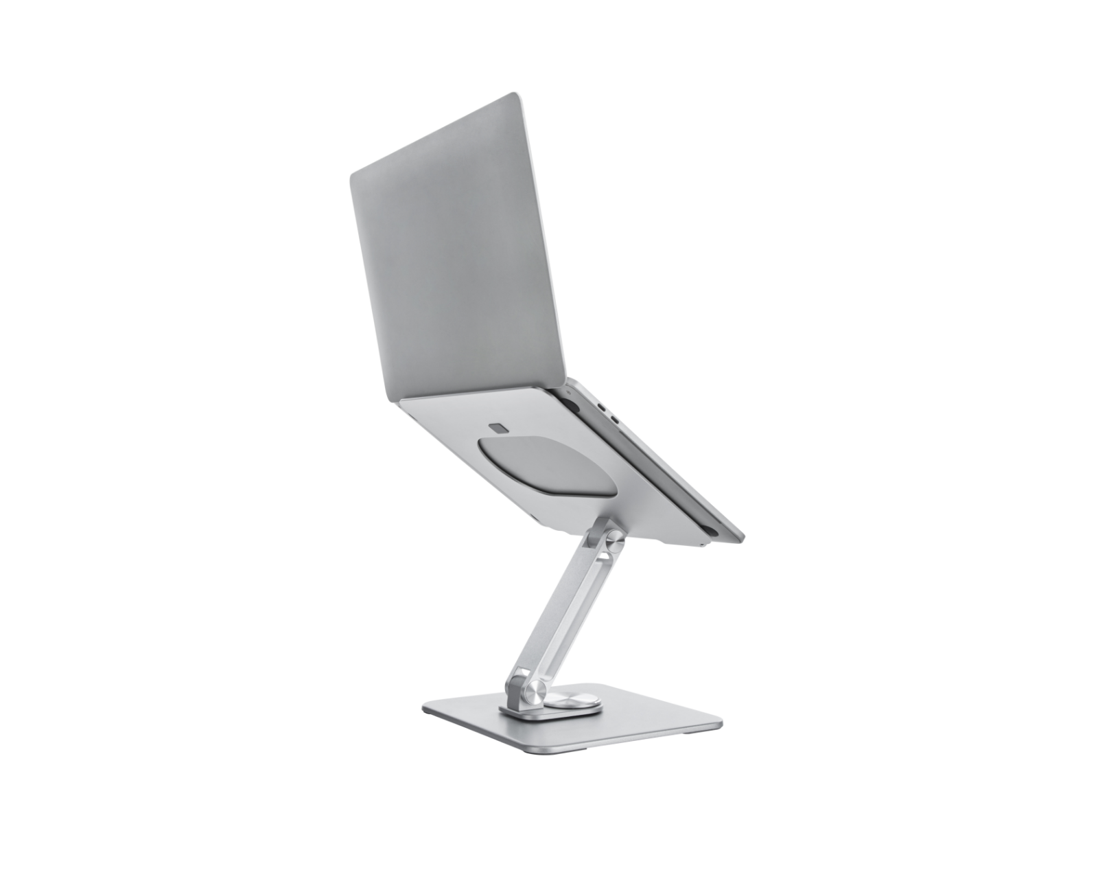 360° Rotating Foldable Laptop Stand is a computer accessory from MaxMount that offers a unique design for flexible use. This stand can rotate 360 degrees, making it easy to share the screen during meetings or switch between tasks. It is compatible with laptops and tablets ranging from 11 to 17 inches. The ergonomic design allows for angle adjustments to achieve the optimal viewing height, thus improving user comfort. The foldable construction facilitates transport and storage.The material of the stand is designed to ensure good ventilation, which enhances airflow and serves as a heat-dissipating mechanism. Anti-skid pads are included to prevent damage to surfaces, and a safety edge stopper protects devices from sliding off. Its adjustable angles allow users to find the most comfortable position for prolonged sessions. The stand is fully collapsible, making it easy to take with you.