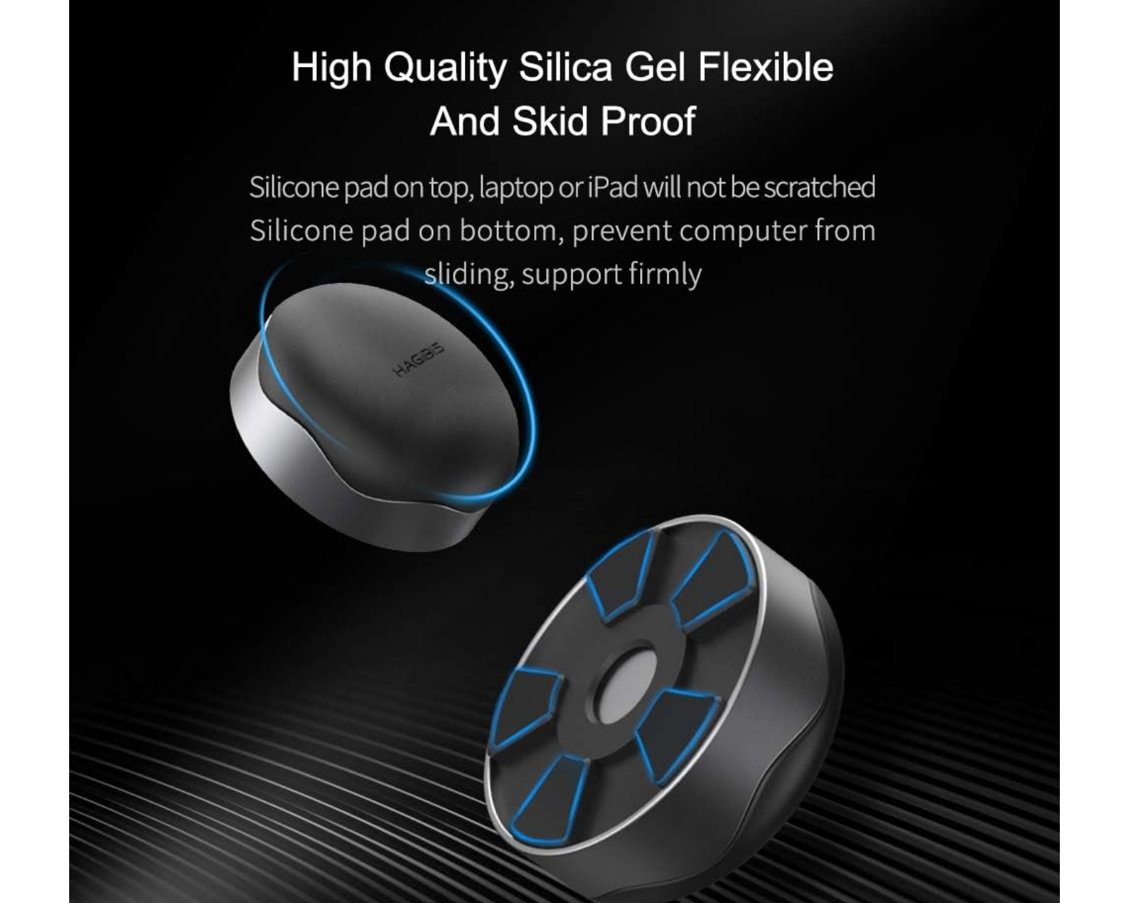 Laptop Stand JD03MK is an ergonomic laptop cooling pad from Hagibis. The product improves the writing angle for laptops and contributes to increased comfort during use. The stand is designed to optimize airflow and effectively dissipate heat from the device, which is especially important for gamers and professional laptop users.With a compact design of only 6.2 x 6.2 x 6.2 centimeters, it is easy to carry. The stand is made of silicone material that offers high flexibility and anti-slip protection, preventing the laptop from sliding off the surface. The magnetic design with Nd-Fe-B magnets makes it easy to attach and remove the stand. The two stands weigh only 49.9 grams, making them perfect for easy storage in pockets or bags. The ergonomics of the design minimizes strain on the neck and back during longer work sessions.