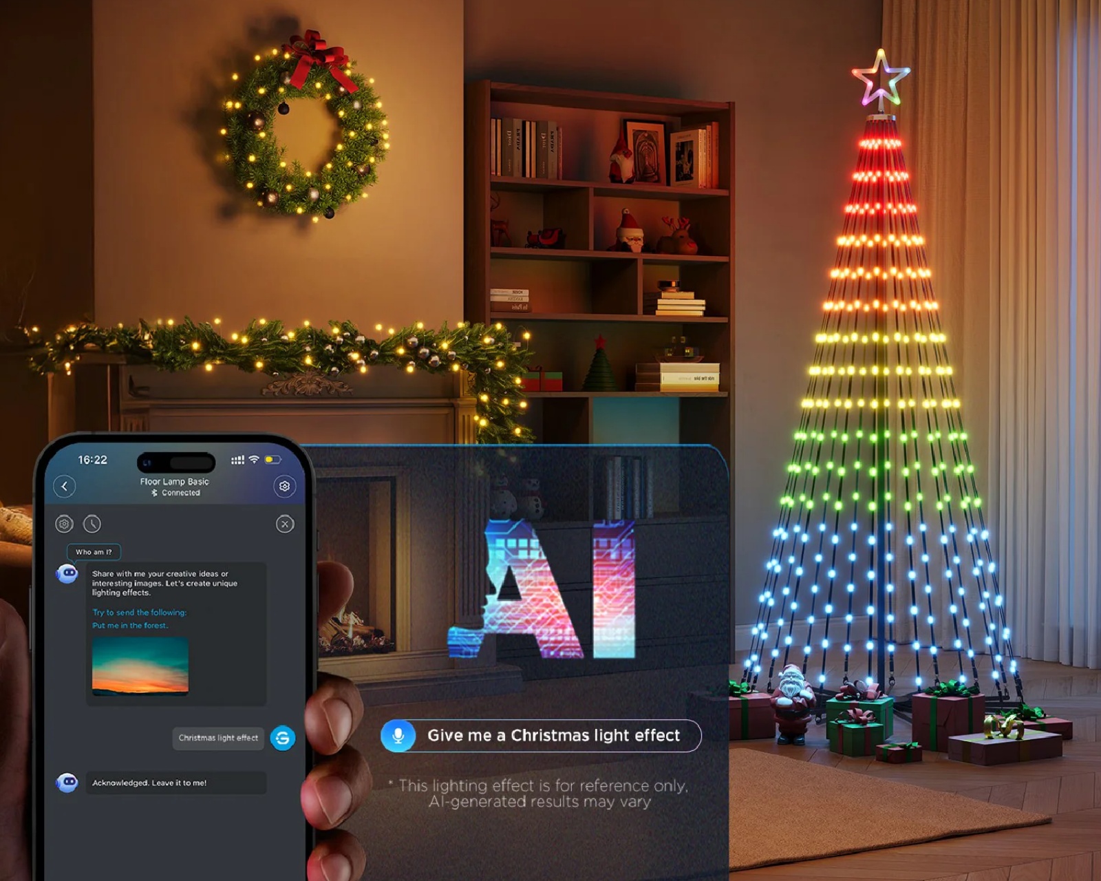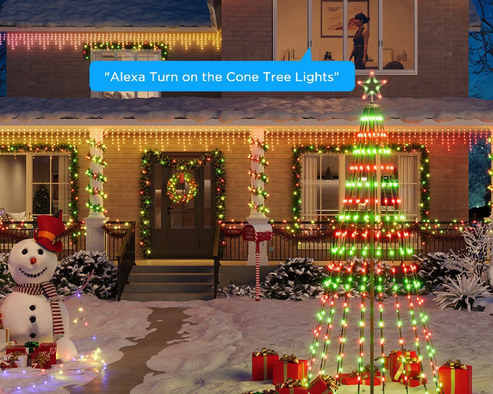 Cone Tree Lights are a light decor from Govee that mimics a Christmas tree and creates a festive atmosphere in any setting. These lights are designed to easily create a cheerful and cozy ambiance during the holidays with smooth installation and smart control options. With support for RGBIC technology, these lights offer over 16 million colors for personalization and can be controlled via the Govee Home App.The lights are built to withstand outdoor use and feature a protected design against wind and are IP67 waterproof, making them resistant to both rain and snow throughout the winter season. With 82 preset scene modes, the lights can be customized for various occasions, and the built-in microphone allows them to synchronize with music without extra equipment. There are also AI-based features to create tailored light effects.