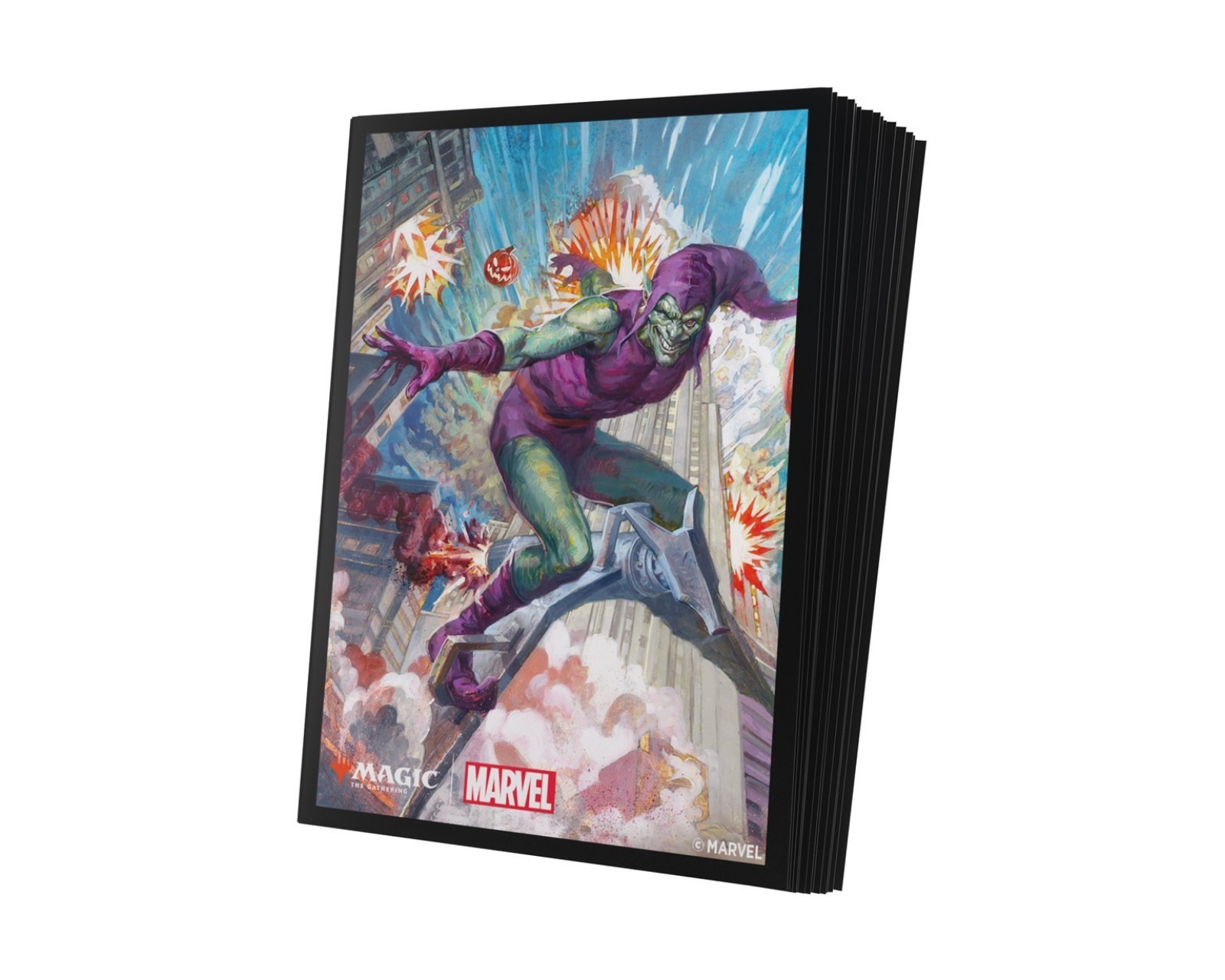 Green Goblin Premium Art Sleeves are a product from Magic: the Gathering that offers protection for collectible cards. These are card sleeves that ensure the cards are protected from wear, dust, and spills. With 105 pieces in the package, these are designed for both casual play and tournaments. The sleeves are made of high-quality material that is both durable and long-lasting. The transparent front allows the artwork of the cards to be seen clearly, while the textured surface with a matte back contributes to a good feel and easy shuffling.Summary