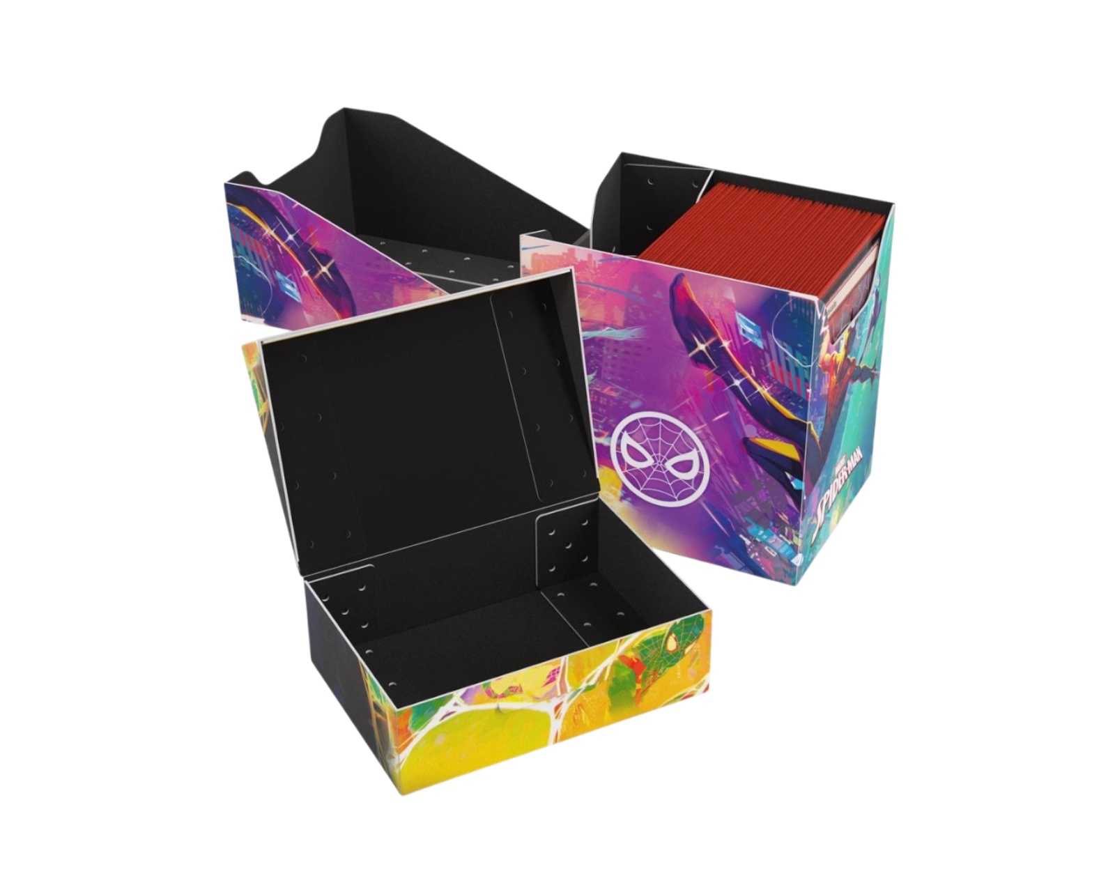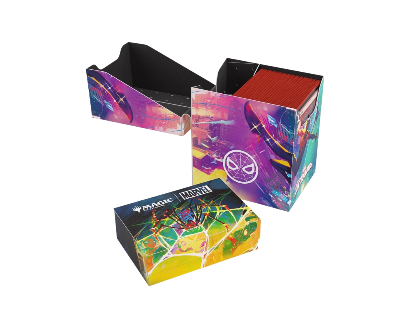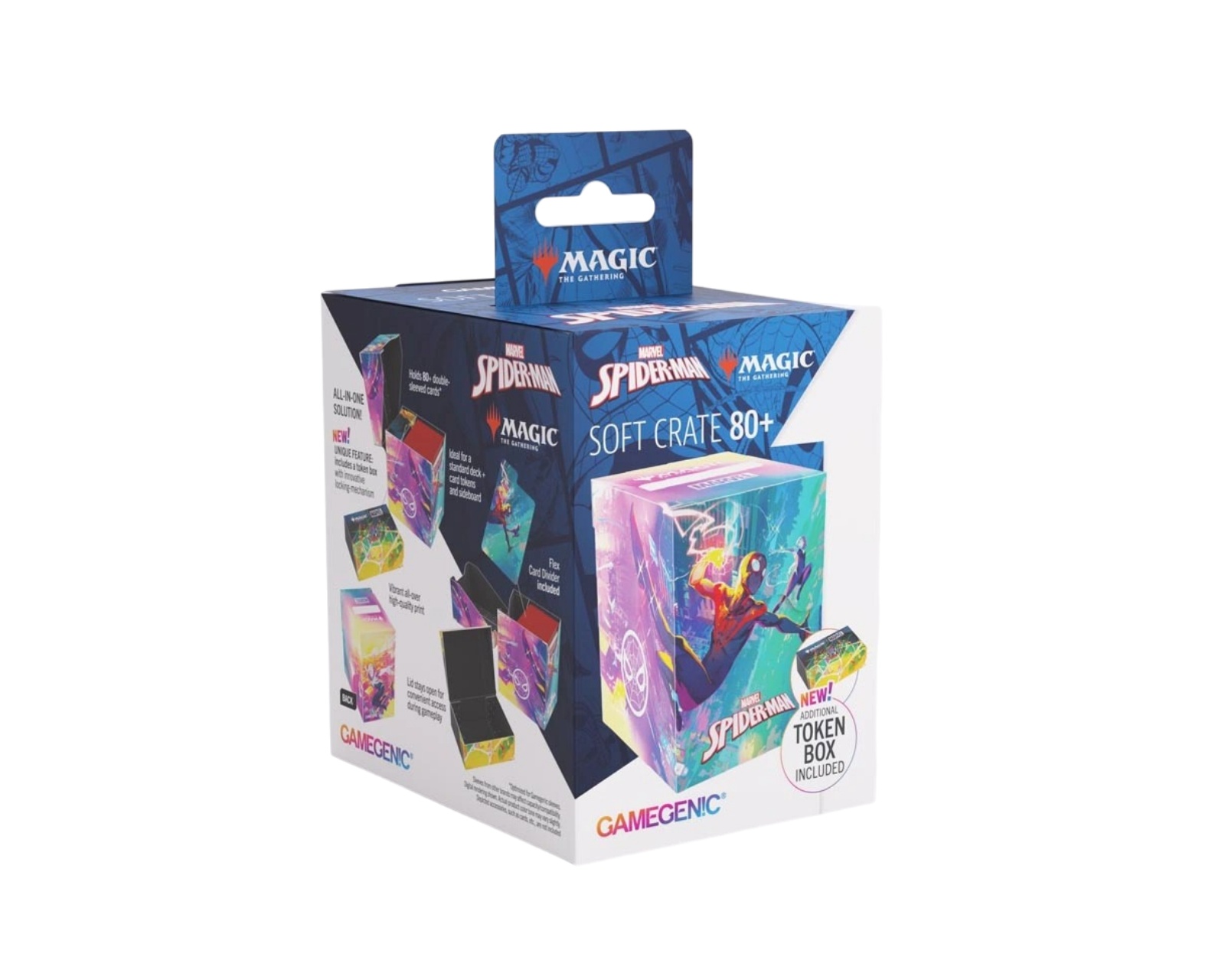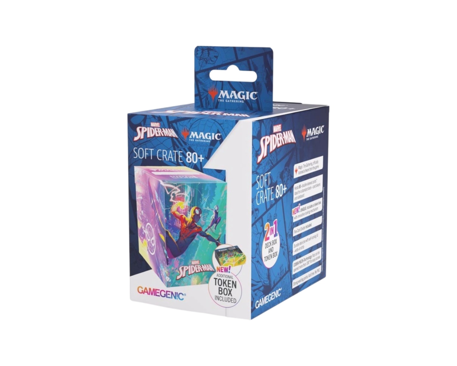 Spider-Man/Gwen Soft Crate 80+ is a playmat from Gamegenic featuring artwork from Magic: the Gathering - Marvel's Spider-Man. The mat is optimized for card games with a surface that provides excellent playing comfort and consists of high-quality material with a thickness of 2 mm. To ensure long durability, the edges of the mat are extra flat-stitched, which protects them and minimizes the risk of cards getting stuck.The mat offers a sleek and functional solution for protecting cards and gaming accessories. The mat is made of a durable composition that guarantees high sustainability and print quality. The backside has a texture that provides extra grip on smooth tables, contributing to a more stable gaming experience. The playmat also offers a smooth surface that facilitates rolling dice. The specific size of the mat is 61.0 x 35.0 x 0.2 cm, making it easy to handle and suitable for most card games.