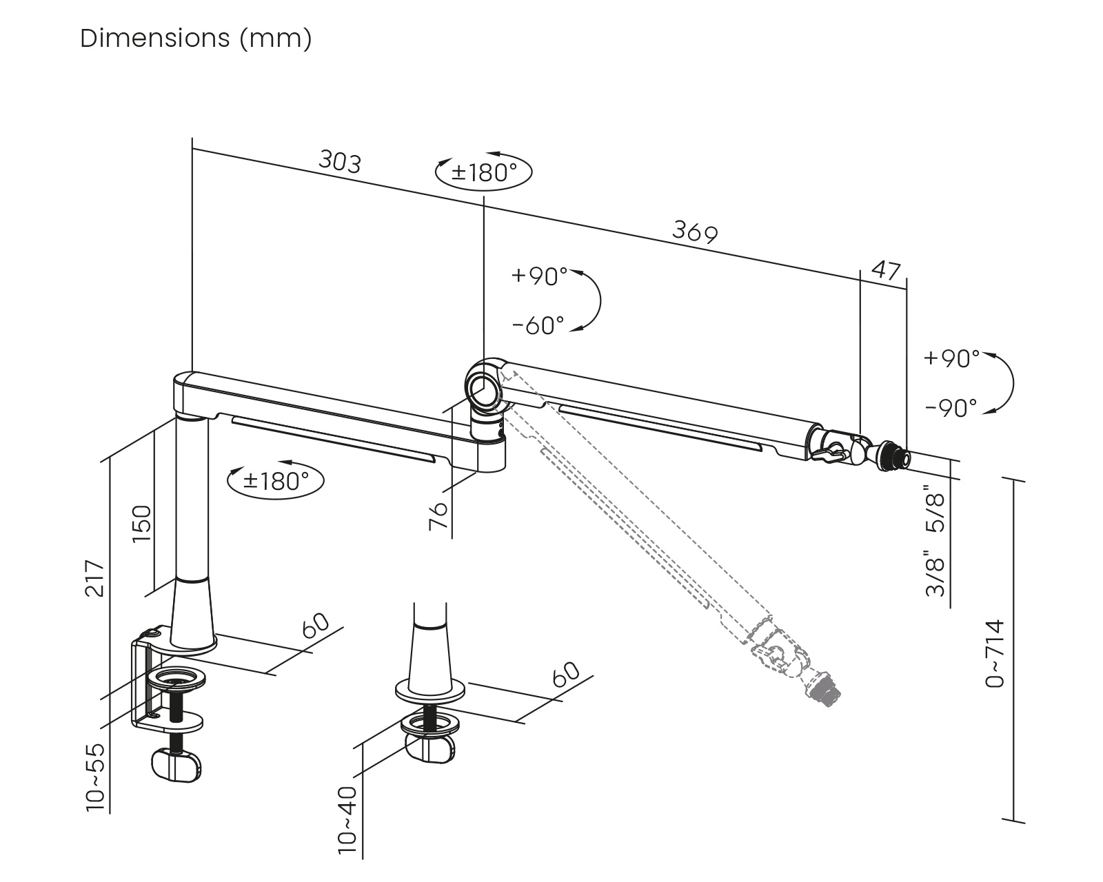 - Boom arm length: 719 mm