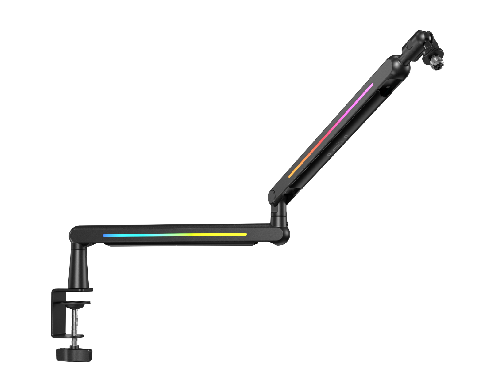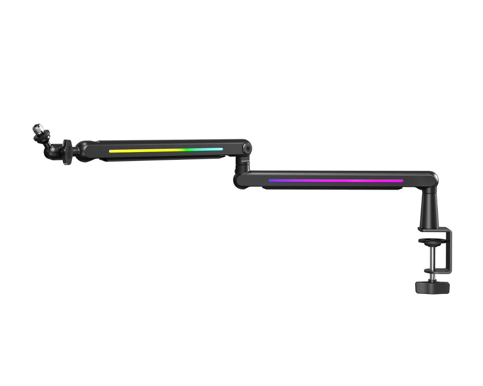 BM88 Pro is a microphone arm from Fifine. It features a high-profile design that enhances your streaming and recording environment. The device is equipped with a 360-degree rotating microphone holder that ensures a seamless recording experience. The microphone arm is designed to fit most desks and benches with its 3/8" and 5/8" adapters.It is compatible with popular microphones such as HyperX, Blue Yeti, Shure SM7B, and Rode, making it versatile for various applications. The adjustable design includes a rotating and swinging ball joint for easy adjustment, offering a tilt from -90° to +90° and full 360° rotation. Cable management is also built-in for an organized workspace.