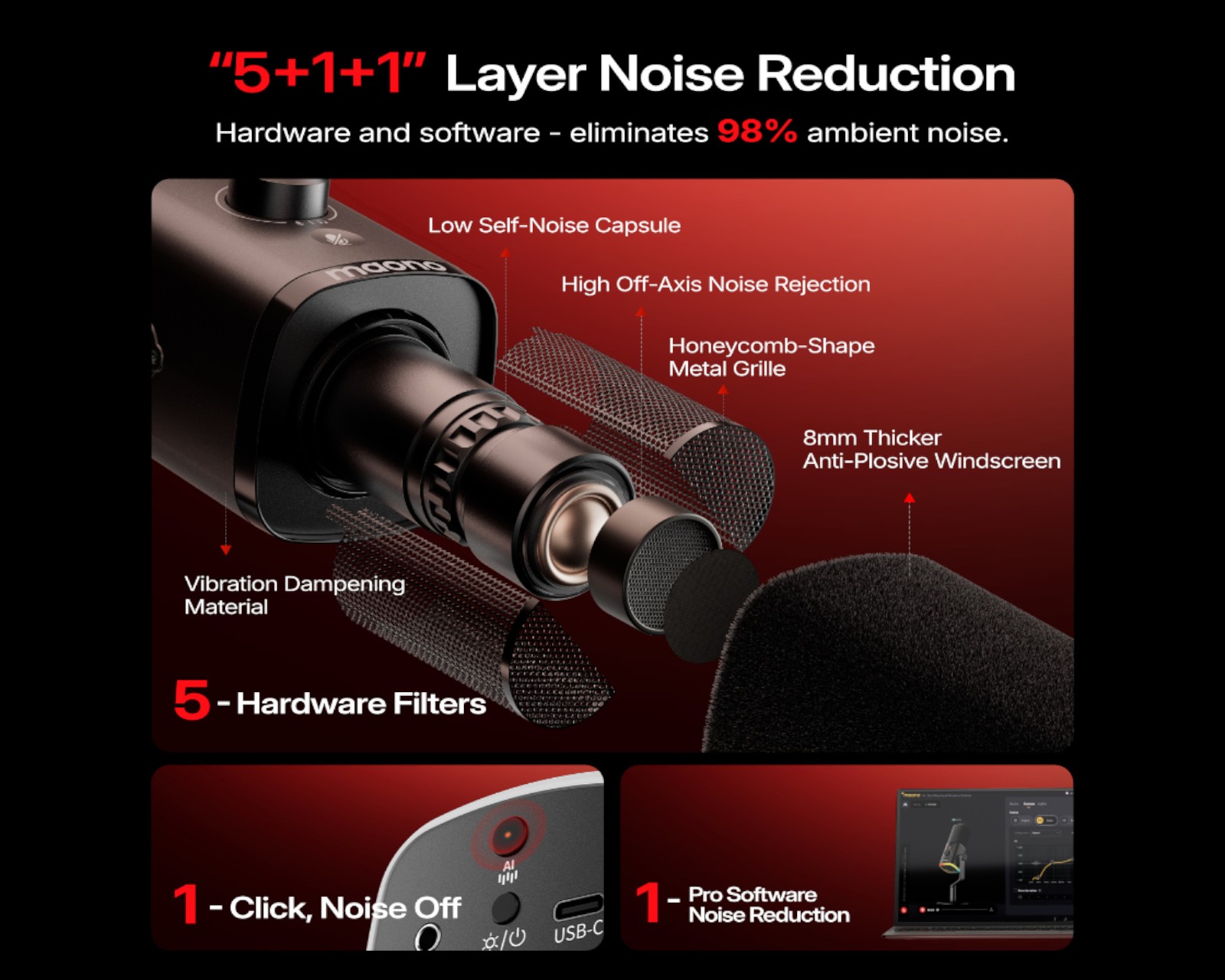 - Effective sound isolation through cardioid pattern