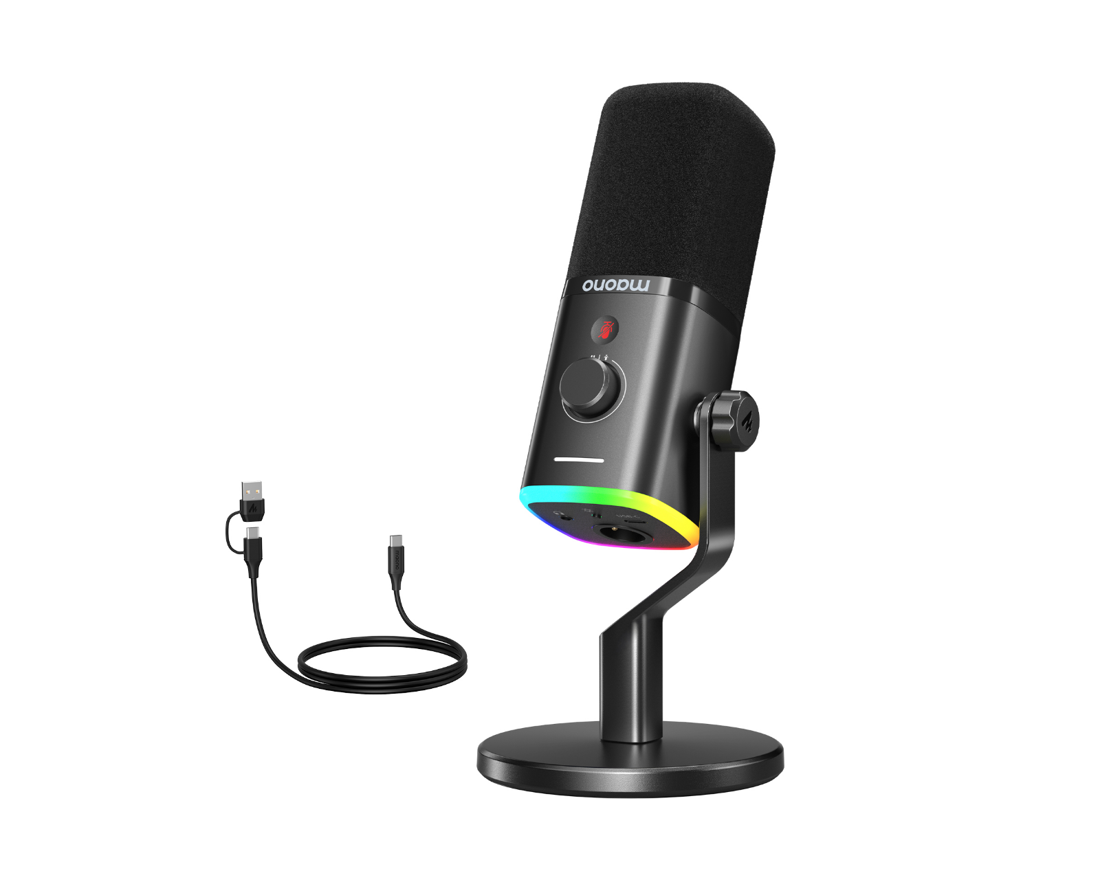 Maono PD100X is a USB/XLR microphone from MAONO that offers high-quality sound recording and RGB lighting. This dynamic microphone is ideal for gamers and streamers looking to enhance their audio production. With compatibility for PC and gaming consoles, its connections provide flexibility in setup.The microphone is built from durable materials and features a robust construction that promotes long-lasting use. It feels comfortable in hand and has an ergonomic design that facilitates usage during longer sessions. With a USB and XLR connection, the microphone can easily be connected to various devices.