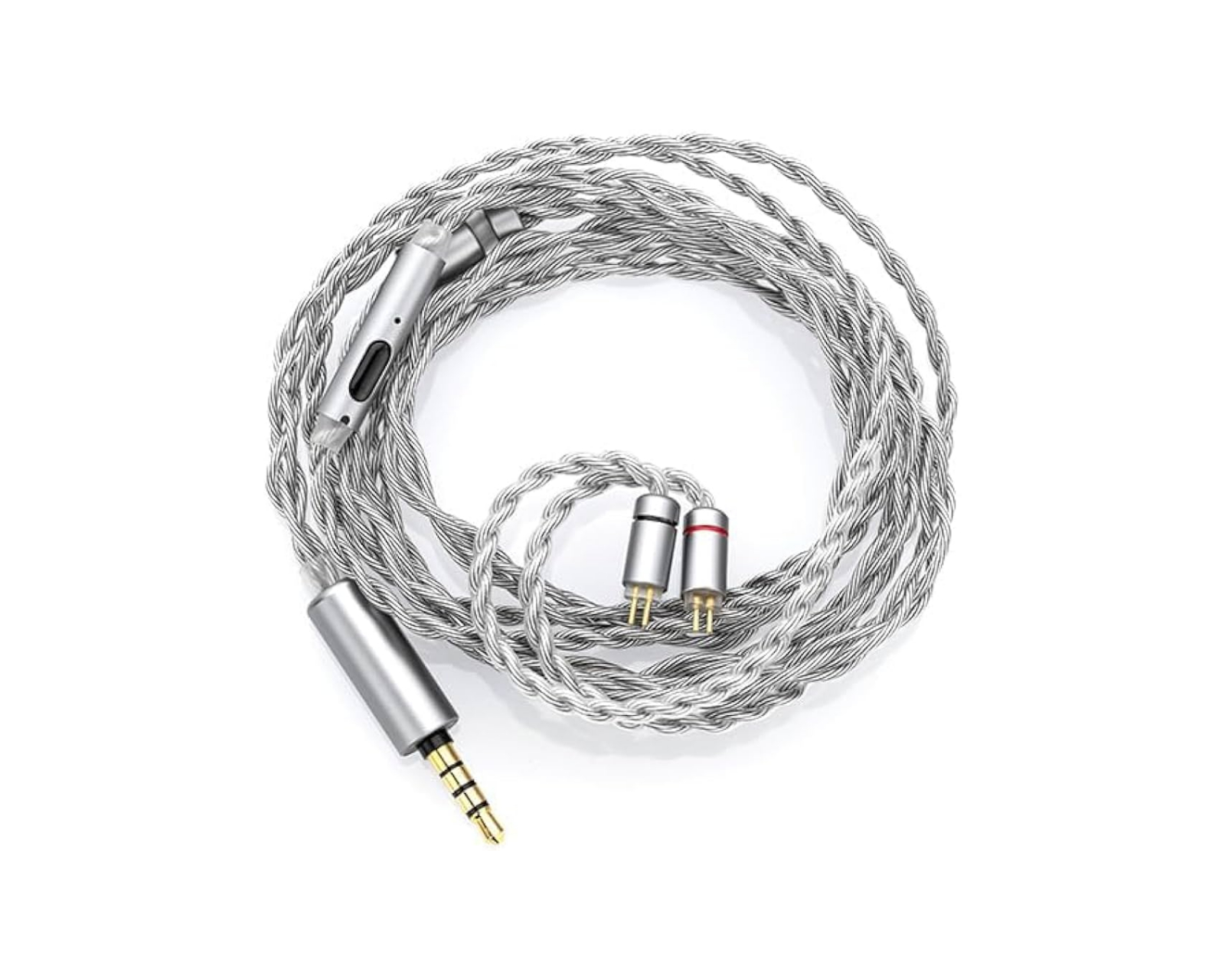 MC2 3.5 mm microphone cable for in-ear headphones from MoonDrop is a cable that combines high-quality signal transmission with practical features for use with wired and wireless headphones. It uses a mixture of oxygen-free copper and silver plating, which contributes to good sound quality, as well as having an inline control system for easy use.The cable contains 75 conductors for each signal, which contributes to high signal transmission and minimizes distortions in the sound. The isolated design for the microphone and inline control separates them from the audio signals, reducing any potential impact on sound quality. The 2-pin 0.8 mm connector makes the cable compatible with most interchangeable headphones. Users can easily control playback and pause as well as answer calls using the buttons on the cable.