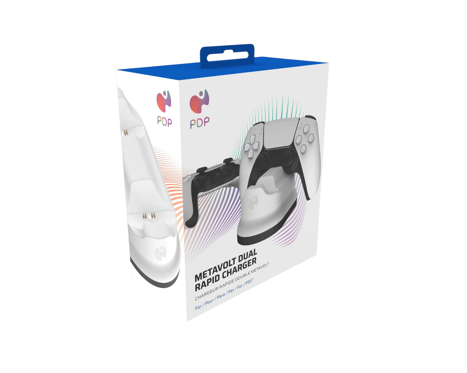 Metavolt Dual Charging System is a charging station from PDP for wireless PS5 DualSense™ controllers. The system allows for fast charging of up to two controllers in less than four hours. It is designed for gamers seeking an efficient and sleek way to manage their controllers' charging. The charging station features a color-coordinated finish that complements your gaming setup.With one-handed drop and charging features, controllers can easily attach to the station after gaming. The non-slip rubber grips on the bottom of the charging station ensure stability when the user places or picks up the controllers. The Metavolt system is constructed to be both functional and aesthetically pleasing, making it a great option for the home or gaming room.