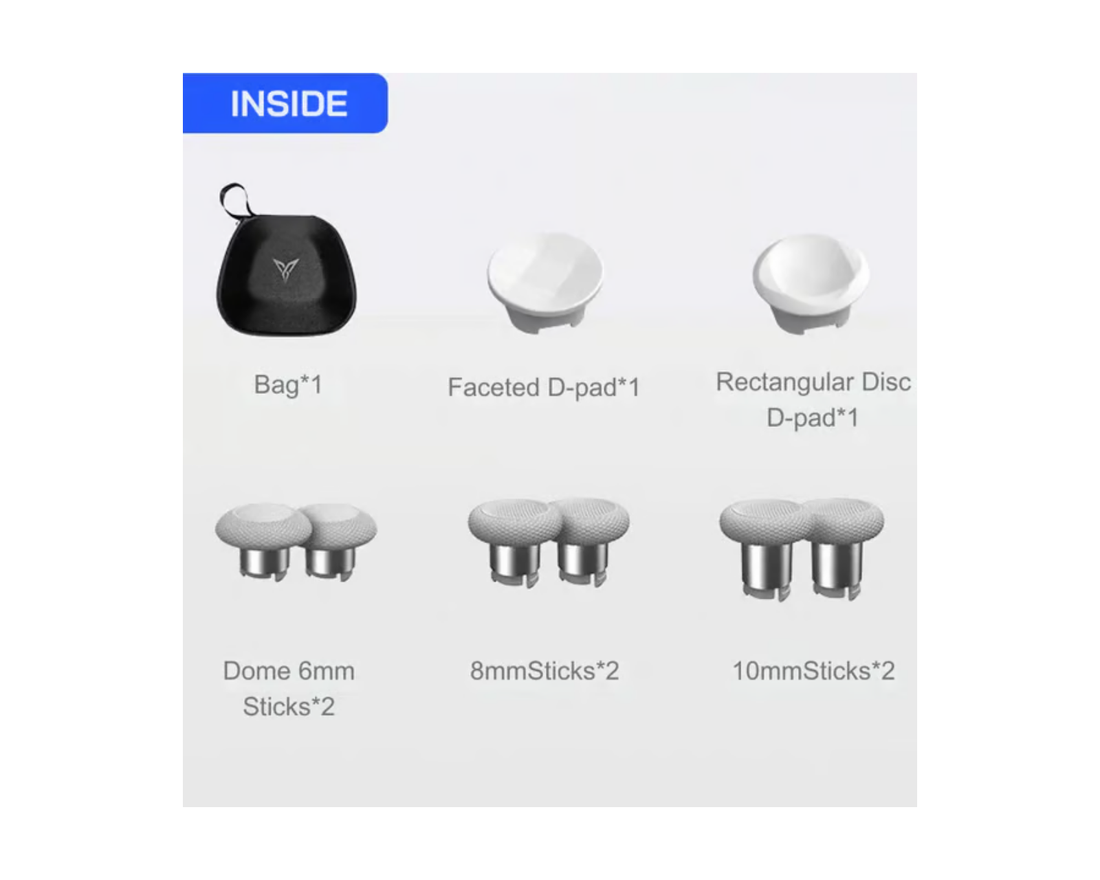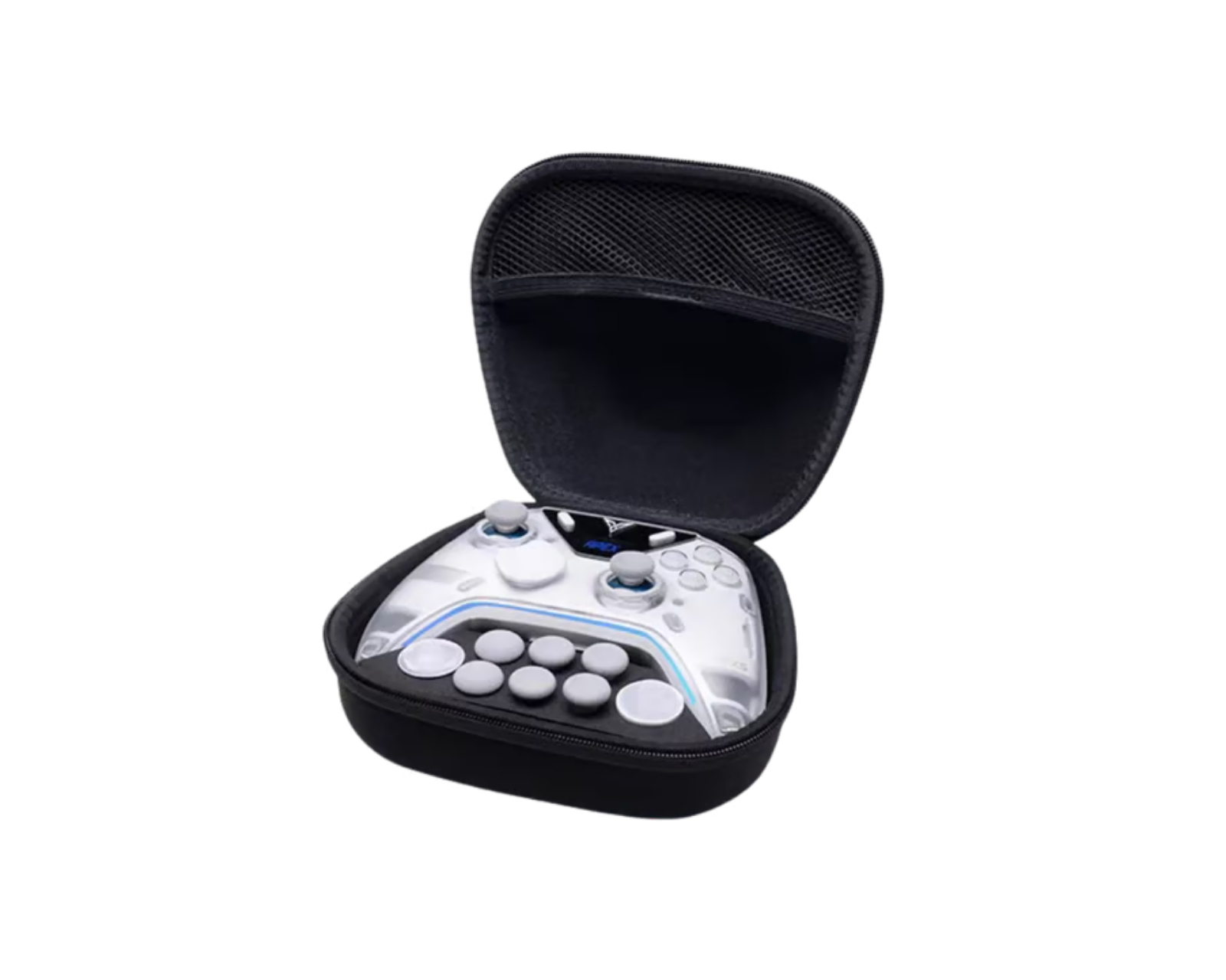 Elite Accessory Case for Apex & Vader Series is a storage solution from Flydigi. It offers protection for the game controller with a specific fit for Flydigi Direwolf/Vader/Apex series controllers. The case features a durable zipper for easy access and is designed to be portable and easy to transport. The hard outer shell is constructed to withstand impacts, which is beneficial for gamers who frequently move their equipment.The soft inner lining protects the controllers from scratches and impacts to ensure safe storage. The case includes several accessories designed for Apex 5, Vader 5 Pro, and Direwolf 4, including 8mm Sticks x 2, 10mm Sticks x 2, Dome 6mm Sticks x 2, Faceted D-pad x 1, Rectangular Disc D-pad x 1, as well as a pouch for storing small parts. This allows the user to customize their game controller according to personal preferences and play styles.