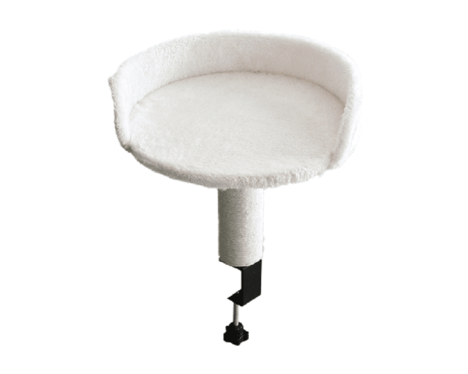 The Clamp-On Cat Bed is a cat bed from MaxMount that attaches to the desk via a clamping system. This design allows the cat to stay close to the user while working or gaming, creating a safe and comfortable place to rest. The cat bed is constructed from high-quality materials that ensure both comfort and durability.The choice of materials prioritizes softness and support for the cat, making it a useful solution for cat owners. The clamping system allows for easy assembly and disassembly without damaging the desk surface. The construction also ensures that the bed remains stable during movement, benefiting both the user and the cat. The neutral white color offers an aesthetically pleasing finish that is suitable for both home and office environments.