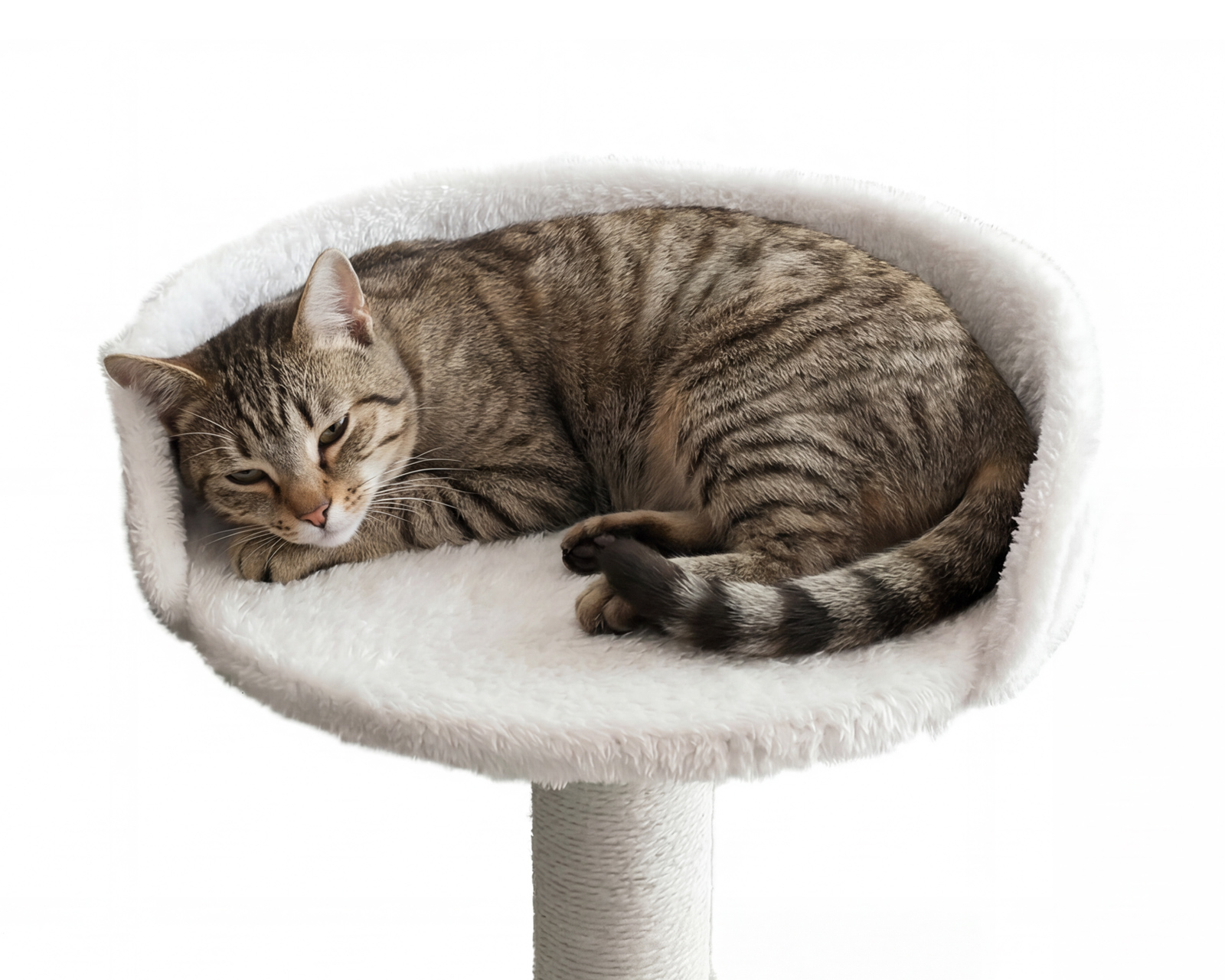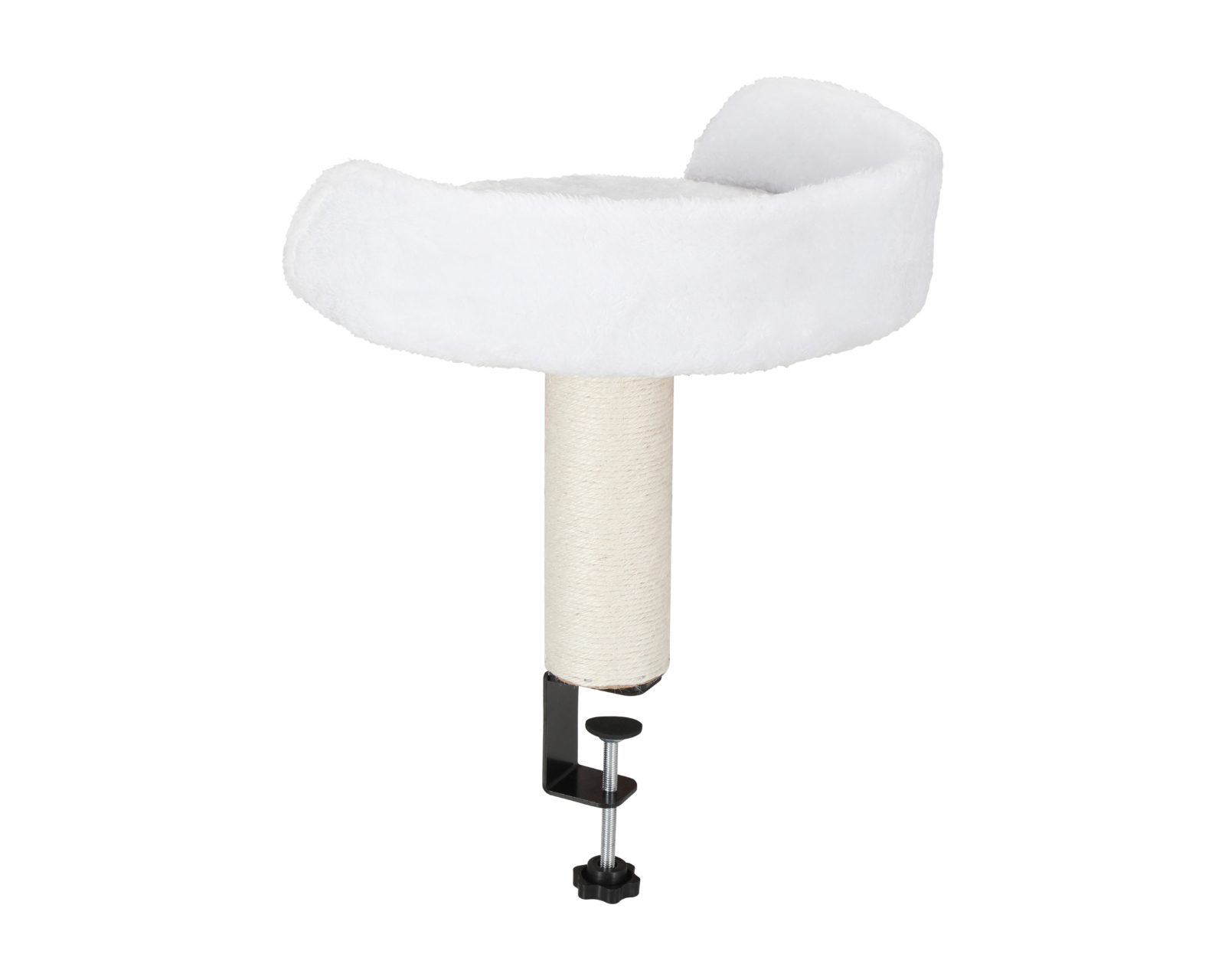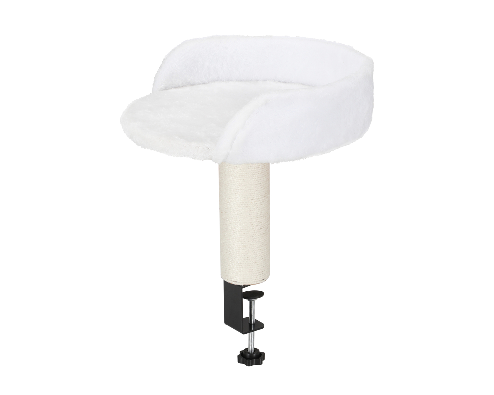 Wall-mounted cat bed is a cat bed from MaxMount that attaches to the desk with a clamp. This design allows the cat to stay close to the user during work or gaming, creating a safe and comfortable place to rest. The cat bed has a diameter of 30 cm and a height of 29 cm, and is constructed from high-quality materials that ensure both comfort and durability.The choice of materials prioritizes softness and support for the cat, making it a usable solution for cat owners. The clamping system allows for easy mounting and dismounting without damaging the surface of the desk. The construction also ensures that the bed remains stable during movement, benefiting both the user and the cat. The neutral white color offers an aesthetically pleasing finish that is suitable for both home and office environments.